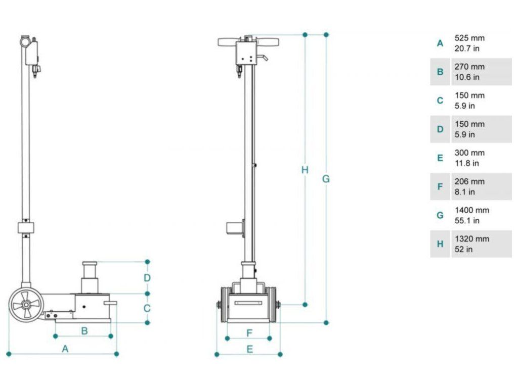 Výkonný pneumaticko-hydraulický zdvihák určený na zdvíhanie nákladných vozidiel, autobusov, návesov a prívesov. Spoľahlivé riešenie pre profesionálne dielne, pneuservisy aj servis ťažkej techniky.