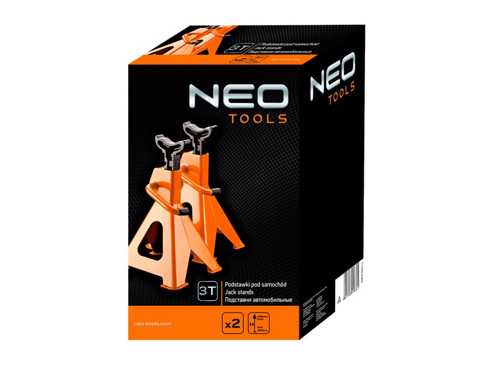 Stojany na autá 3 t, 295-415 mm 11-750 od spoločnosti NEO sú súpravou dvoch kusov stojanov, ktoré sa vyznačujú nosnosťou 3 tony a západkovým zámkom výšky. Ponúkajú rozsah od 295 do 415 mm, čo im umožňuje pracovať až v 10 rôznych polohách. Sú vybavené automatickým zámkom zdvíhania a sú zárukou bezpečnosti a primeranej ochrany vozidla pred pádom. Stojany sa používajú na podopieranie zdvíhaných automobilov alebo iných zariadení. Vďaka svojej robustnej konštrukcii a splneniu certifikácie TÜV M+T budú nepostrádateľné v každej autodielni.