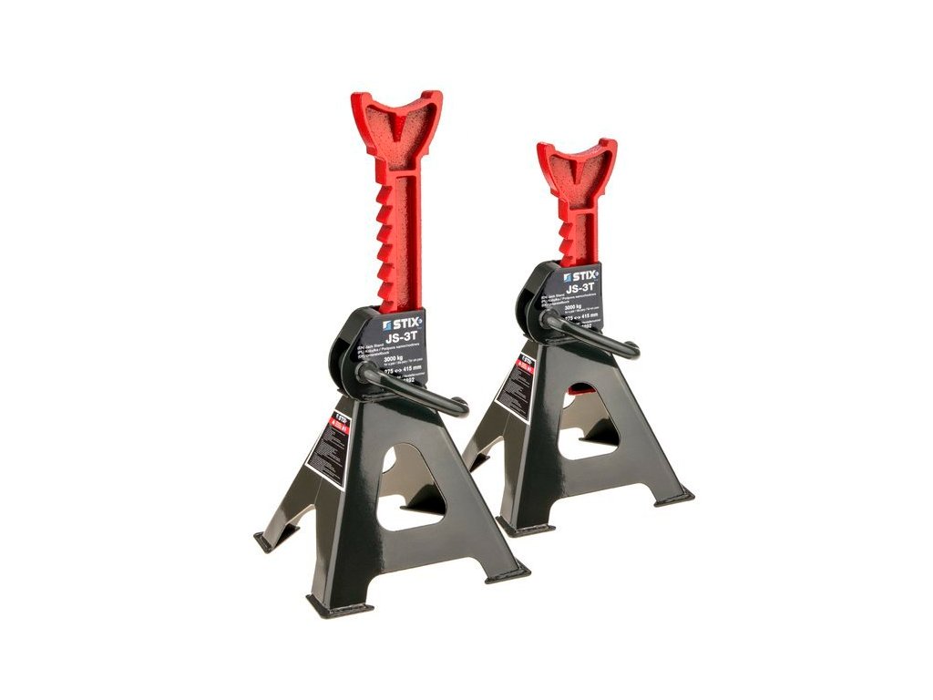 Podpery pod vozidlá s maximálnou nosnosťou do 3 ton, pracovný rozsah 275 - 415 mm. Balenie obsahuje 2 kusy.