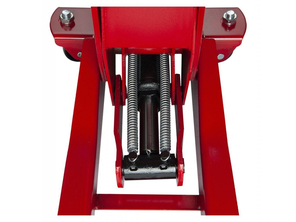 Zdvihák s nosnosťou až 2,5 tony bude nenahraditeľným zariadením vo všetkých servisoch, dielňach a garážach. Využijete ho pre väčšinu osobných automobilov. Zdvihák bol vyrobený z vysokokvalitnej ocele. Táto masívna konštrukcia zariadenia vydrží niekoľko rokov. V rámci bezpečnosti má zariadenie zabudovaný bezpečnostný ventil, ktorý ho chráni pred prípadným preťažením. Manipulácia v dielni alebo servise bude vďaka veľkým rotujúcim kolesám pohodlná a nenáročná. O efektivitu zdviháka sa stará zabudované zdvojené čerpadlo, ktoré zrýchľuje prácu a zdvihne každé auto s ľahkosťou. Okrem iného je zdvihák vybavený aj otočným sedlom a torznou tyčou s dĺžkou až 100 cm!