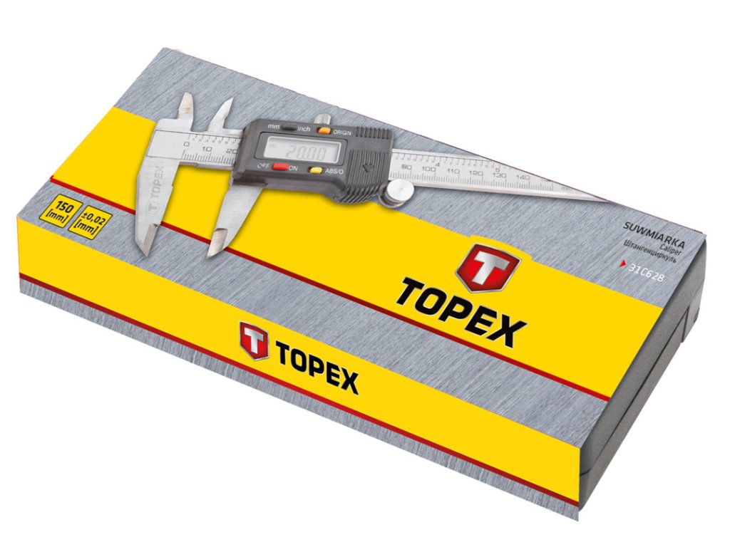 Digitálne meradlo TOPEX (ref. 31C628) s rozsahom merania 150 mm a presnosťou 0,02 mm patrí medzi základné meracie prístroje. Umožňuje vnútorné, vonkajšie a hĺbkové meranie, ktorého výsledky sa uvádzajú v milimetroch alebo palcoch. Upínacia skrutka, ktorá zaisťuje sklíčko, uľahčuje meranie a veľký displej uľahčuje čítanie. Ďalšou výhodou je funkcia nulovania v ľubovoľnom bode. Certifikát CE zaručuje súlad s európskymi bezpečnostnými normami. Značka TOPEX je určená pre domácich majstrov.