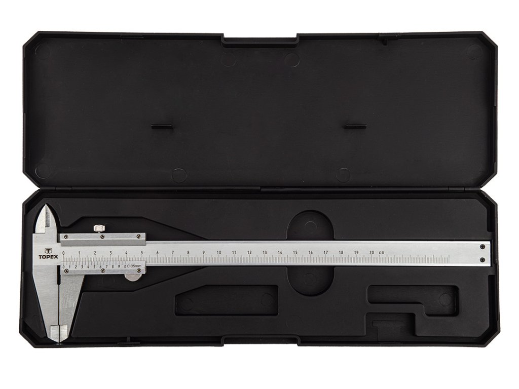 TOPEX kaliper (ref. 31C616) s meracím rozsahom 200 mm a presnosťou 0,05 mm je jedným zo základných meracích prístrojov. Umožňuje interné a externé merania. Upínacia skrutka zaisťujúca sklíčko uľahčuje meranie. Značka TOPEX je určená pre domácich majstrov.