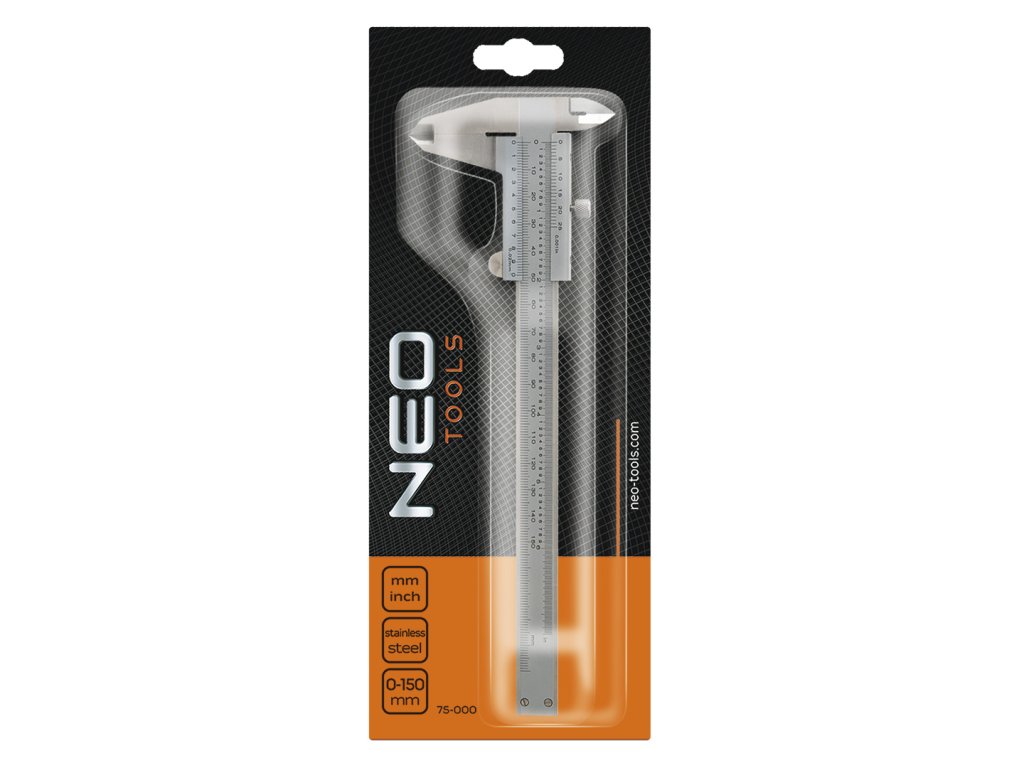 Posuvné meradlo NEO (ref. 75-000) s rozsahom merania 150 mm a presnosťou merania 0,02 mm patrí medzi základné meracie prístroje. Vyrobené z vysoko kvalitnej nehrdzavejúcej ocele. Štyri funkcie - na vnútorné, vonkajšie, hĺbkové a poruchové merania. Nónius vyrobený z jedného kusu nehrdzavejúcej ocele bez spojov zaručuje presnosť. Upínacia skrutka, ktorá zaisťuje sklíčko, uľahčuje meranie. Praktický plastový obal umožňuje pohodlné skladovanie a prepravu. Spoľahlivosť výrobku potvrdzuje 25-ročná záruka. Značka NEO spĺňa očakávania profesionálov.