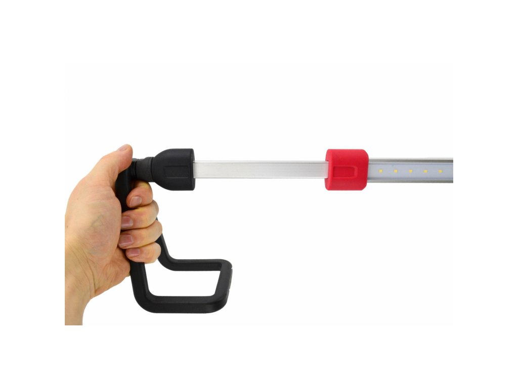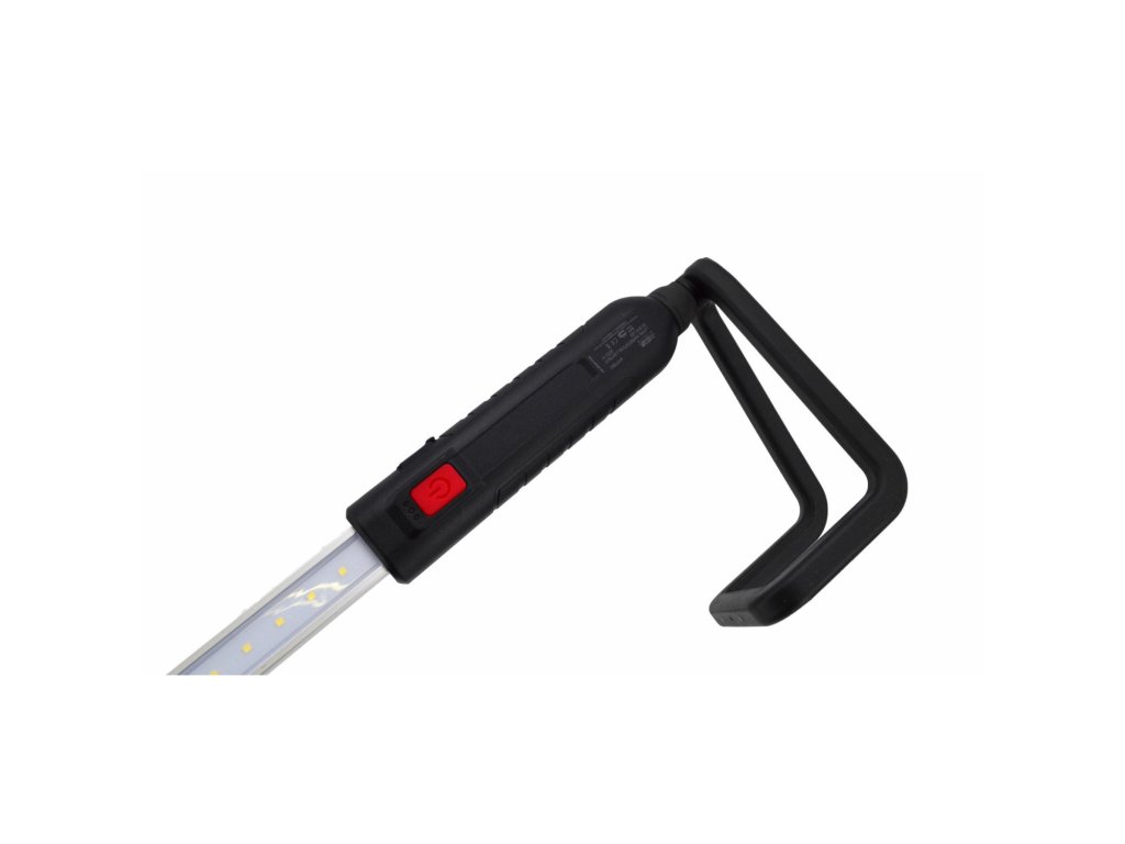 Odolné puzdro je kombináciou hliníka a plastu s protišmykovým TPR povrchom a nárazuvzdornou polykarbonátovou šošovkou. Praktické výsuvné háčiky sú potiahnuté gumou a umožňujú pohodlné zavesenie, pričom uhol svietenia si nastavíte v rozsahu 360°. Nechýba LED indikátor stavu batérie a 3 režimy jasu. Svetlo je ideálne do automobilových dielní, pneuservisov aj servisov. V balení nájdete 2 lítium-iónové batérie a USB kábel.