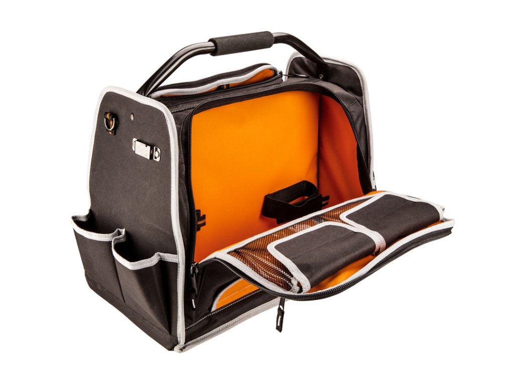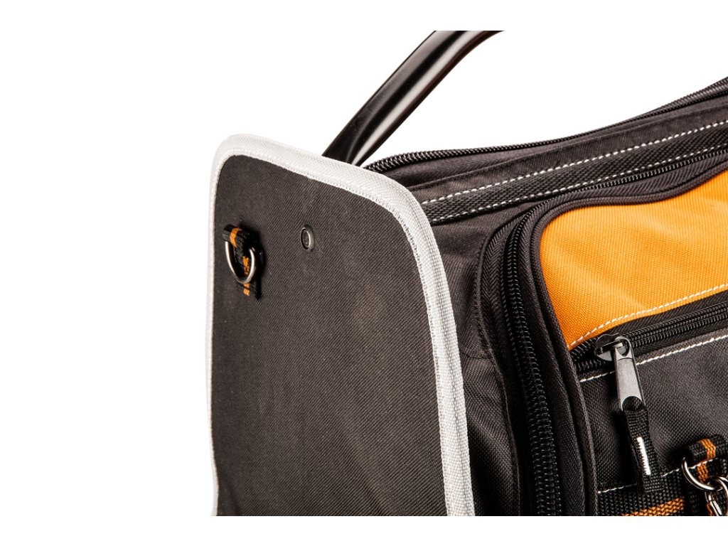 Montérska taška NEO (ref. č. 84-301) polyester 600D, pevná profilovaná rukoväť, 32 vnútorných vreciek, 12 vonkajších vreciek, pevná konštrukcia, háčik na mierku, dve hlavné komory, okienko na personalizovanú etiketu, spevnené zipsy,
