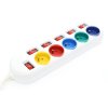 Predlžovačka má 5 zásuviek, ktoré sú farebne odlišené, s uzemňovacími kolíkmi (jednotlivé vypínače ku každej zásuvke), s centrálnym vypínačom, ako aj s prepäťovou ochranou.
