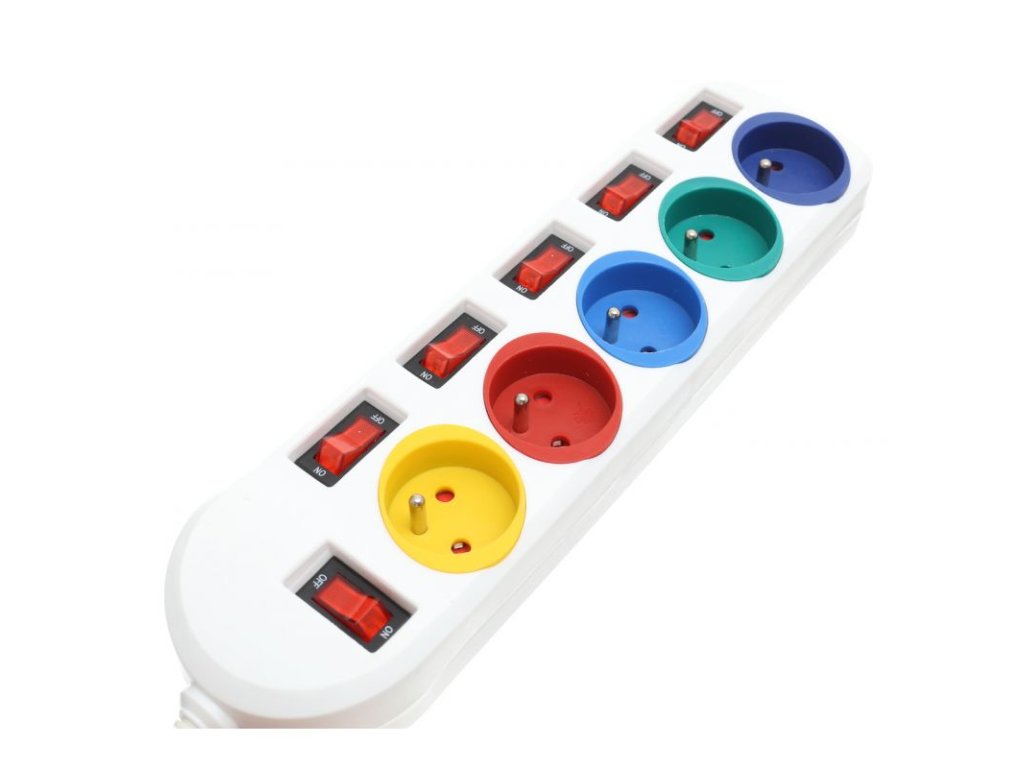 Predlžovačka má 5 zásuviek, ktoré sú farebne odlišené, s uzemňovacími kolíkmi (jednotlivé vypínače ku každej zásuvke), s centrálnym vypínačom, ako aj s prepäťovou ochranou.