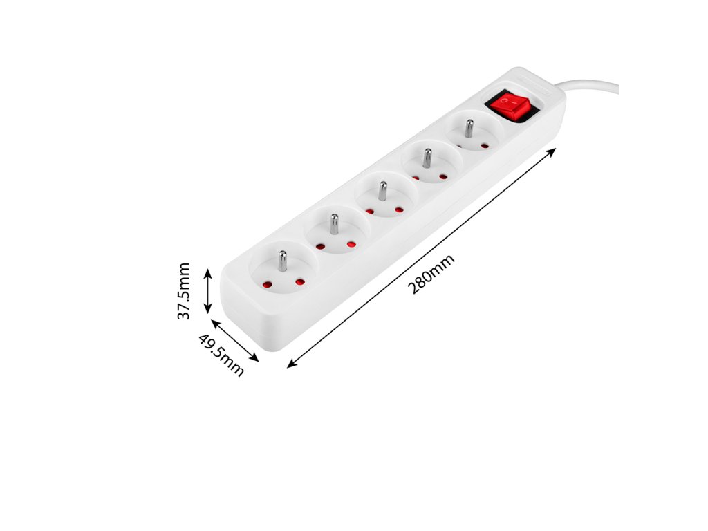Predlžovací kábel 5m, 3x1,5mm?, 5 zásuviek, biely, ON/OFF, 100% medené vodiče, 16A 230V, E/F zástrčka, E zásuvka, max. 3680W