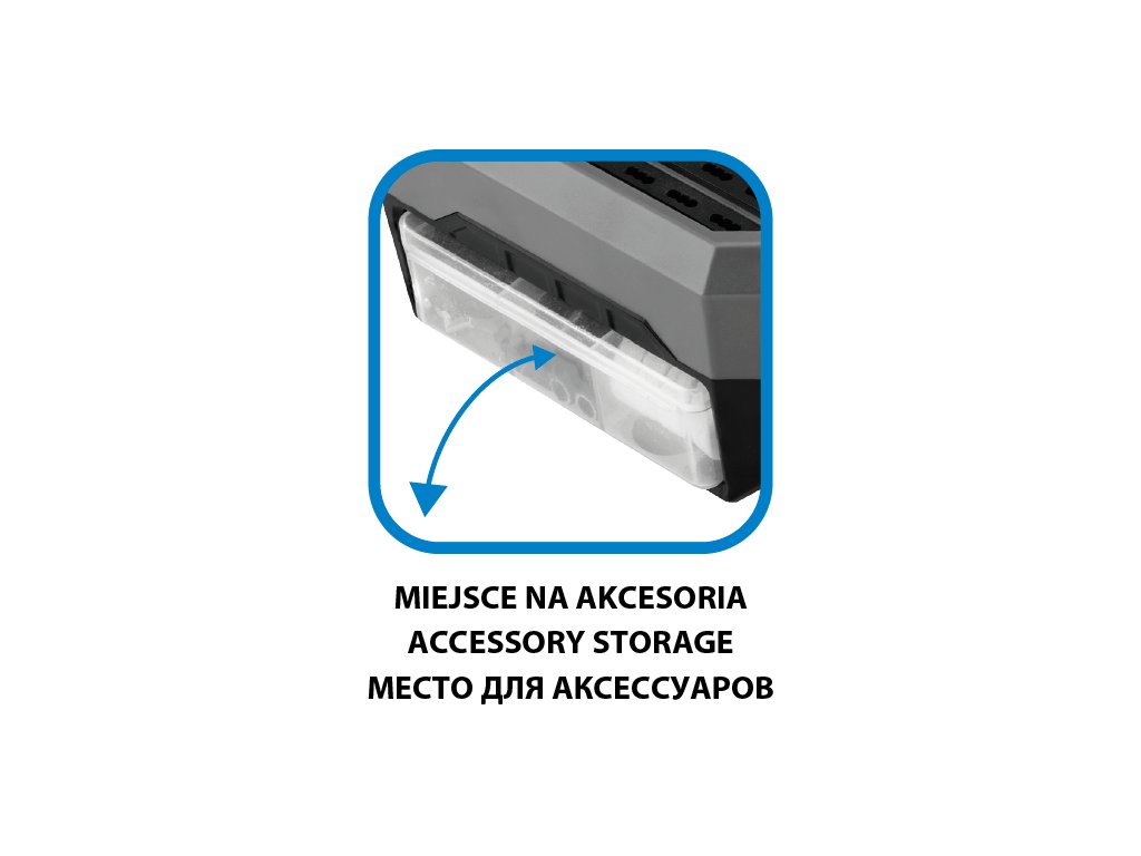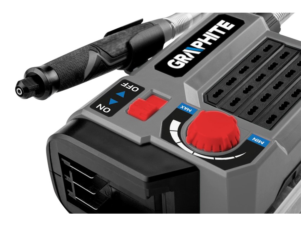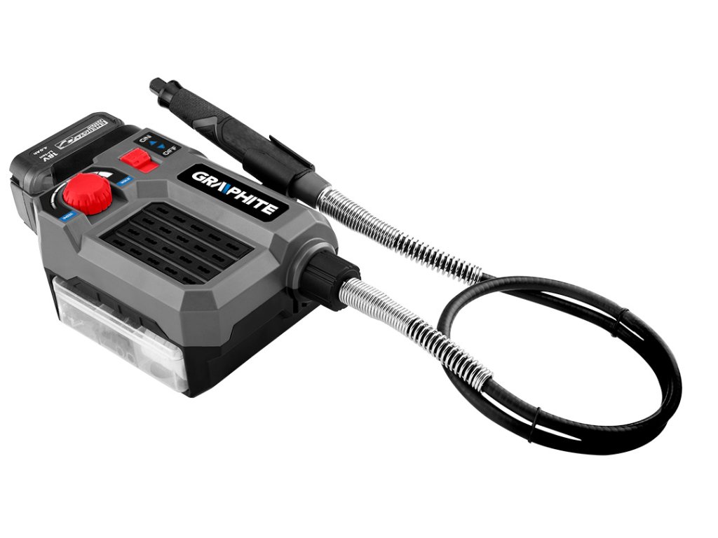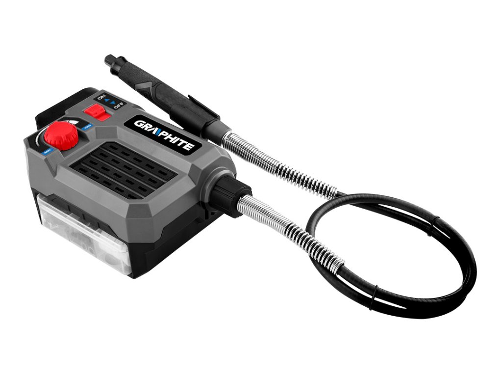 Akumulátorová minibrúska Energy+ 18 V bez akumulátora 58GE107 od spoločnosti GRAPHITE je náradie určené na rôzne presné dokončovacie práce: brúsenie, rezanie, gravírovanie, odstraňovanie prachu, frézovanie - aj na ťažko prístupných miestach. Funguje na základe dobíjacieho systému Energy+ a 18V lítium-iónovej batérie. Prevádzkový čas 2Ah batérie je 49 minút. Odporúčaná batéria je 4 Ah. Nástroj má variabilnú reguláciu otáčok (5000 - 33000/min). Má zásuvku na príslušenstvo, gumové podložky na stabilizáciu nástroja, ktoré tlmia nárazy, a protišmykovú rukoväť. Priemer vretena minibrúsky a priemer rukoväte je 3,2 mm. Ohybný hriadeľ je dlhý 1 m. Súprava obsahuje 40 kusov príslušenstva: 5x rezný kotúč, 10x brúsny papier, 3x brúsny kotúč so skľučovadlom 3,2 mm, 2x brúsna stopka, 6x brúsny pás, 1x vrták, 3x diamantové vrtáky 3,2 mm, 2x tŕň 3,2 mm, 4x plstený kotúč, 1x oceľová drôtená kefa 3,2 mm, 1x kľúč, 1x leštiaca hmota, 1x fréza Hss 3,2 mm. Toto je dokonalý nástroj značky GRAPHITE na úlohy pre domácich majstrov.