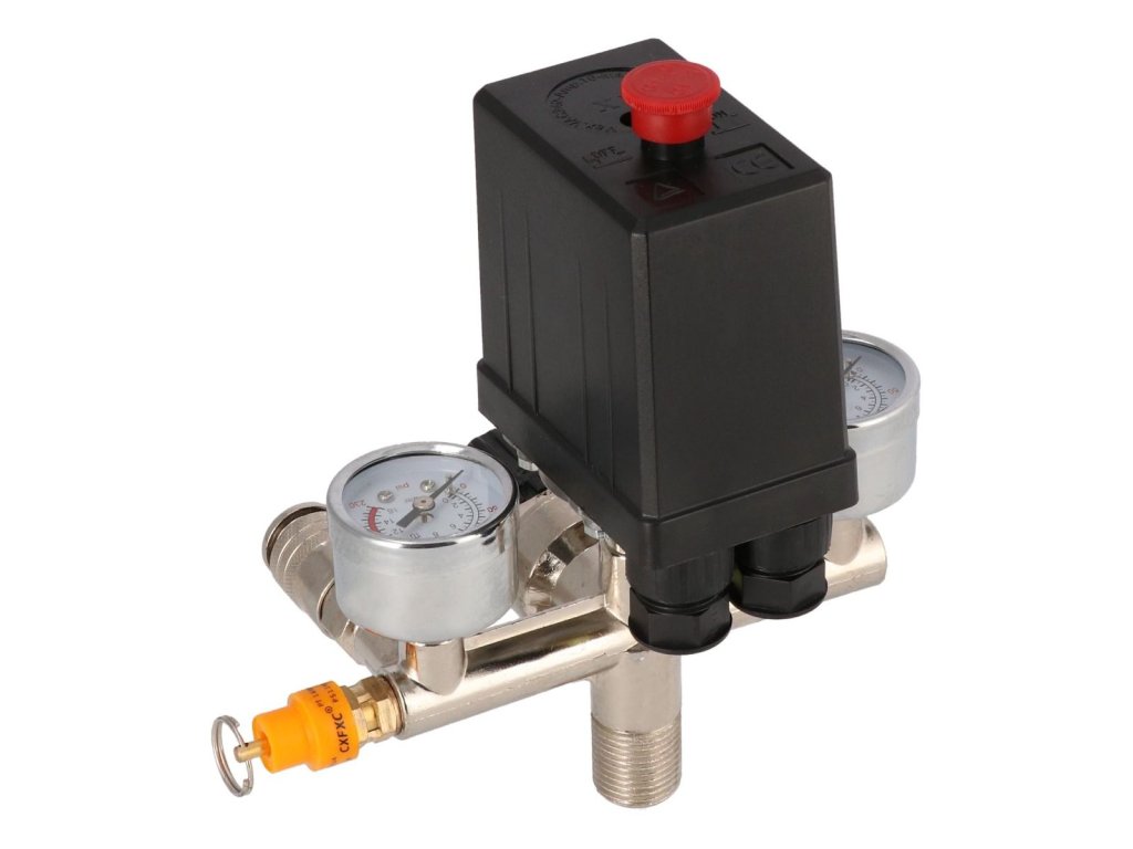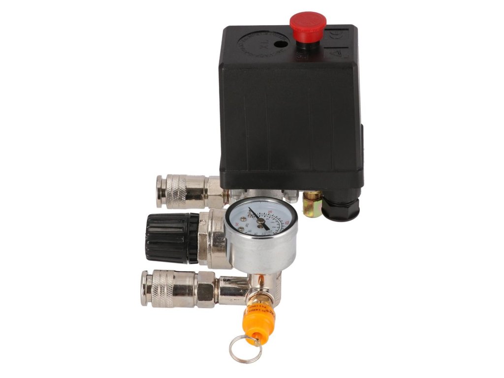 Regulátor tlaku 1/2" 10 bar s tlakovým spínačom, 2 manometrami a 2 rýchlospojkami 1/4" 36826-R