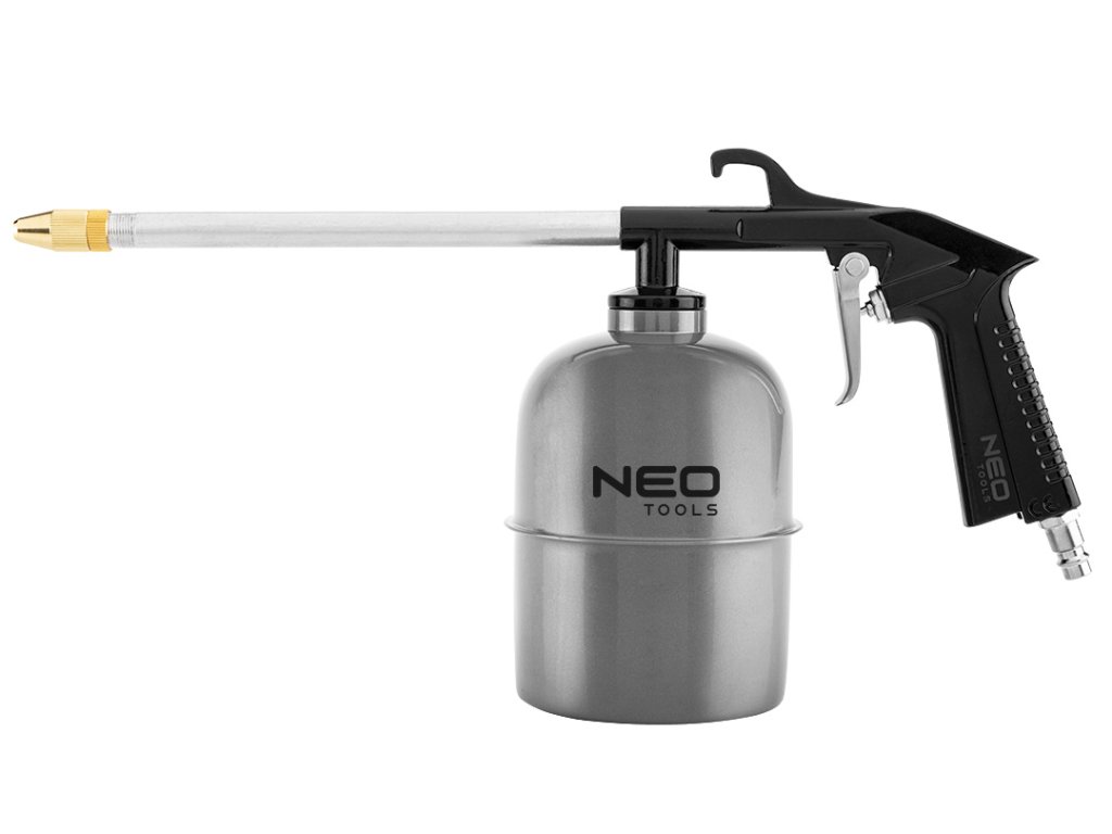 Súprava lakov NEO pozostáva z 5 prvkov. Súprava pripravená na použitie pre vybavenie dielne so širokou škálou aplikácií, napr. lakovanie, čerpanie, čistenie povrchov. Skladá sa z: striekacej pištole na farbu s vrchnou nádržou, olejovej pištole, ofukovacej pištole, pištole s kolieskovým čerpadlom s manometrom a špirálovej hadice.