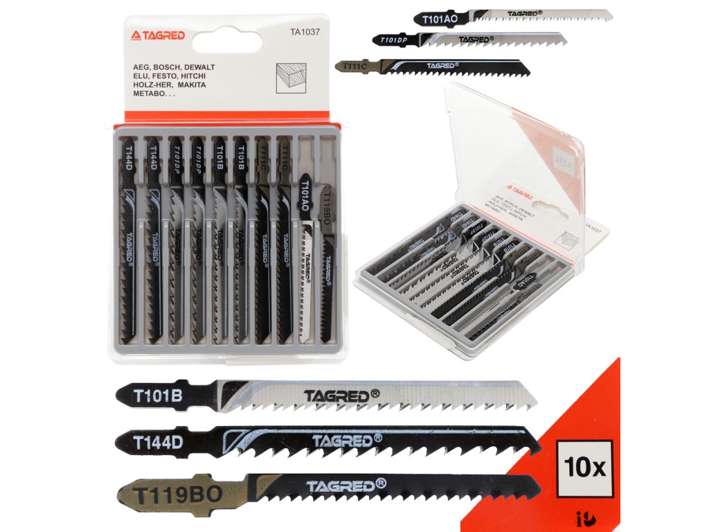 Profesionálna sada pílových listov TAGRED určená na rezanie dreva a plastov, určená na použitie s pílou s držadlom typu T.