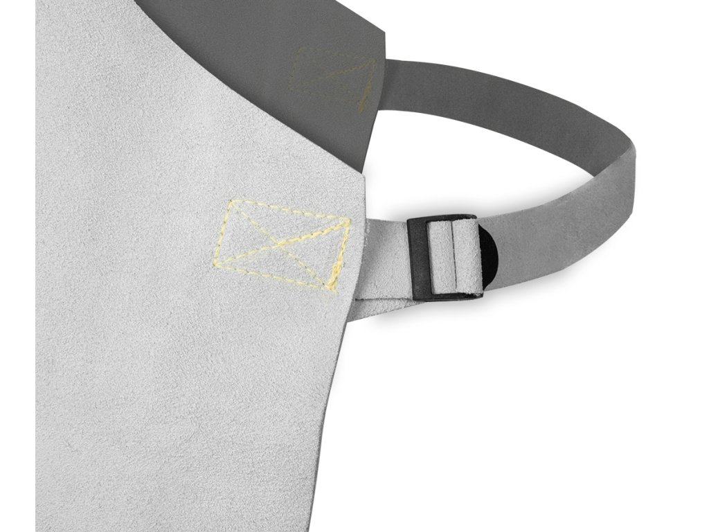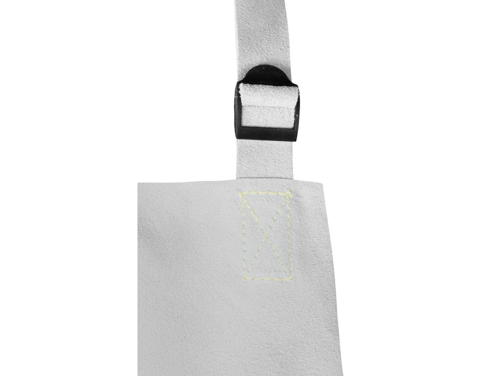 Kožená zváračská zástera 60 x 90 cm, vyrobená z hovädzej štiepanej kože s hrúbkou 1,2-1,4 mm, kožené popruhy pripevnené k zástere kevlarovou niťou, nastavenie popruhov pomocou pracky, ochranná kategória II, zhoda s normou EN ISO 11611:2015, certifikát CE