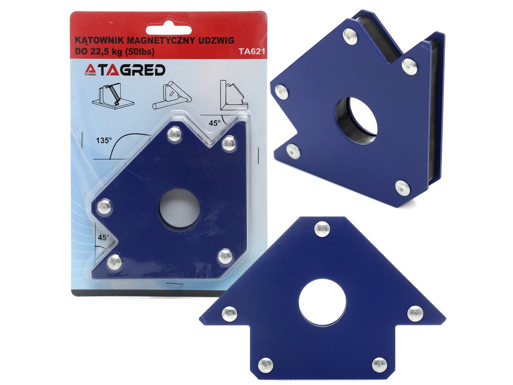 Uholník je užitočný pri zváraní, montáži kovových prvkov, spájkovaní, trasovaní a prípadne zdvíhaní oceľových prvkov. Silný magnet s veľkou plochou obalený kovovými platničkami, ktorý umožňuje presné a trvalé umiestnenie materiálu pod uhlom 45, 90 alebo 135 stupňov a vďaka veľkej priťahovacej sile zaisťuje stabilnú, nepohyblivú polohu.