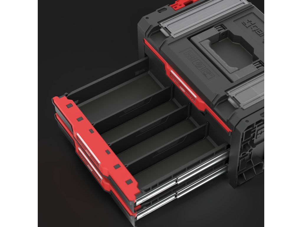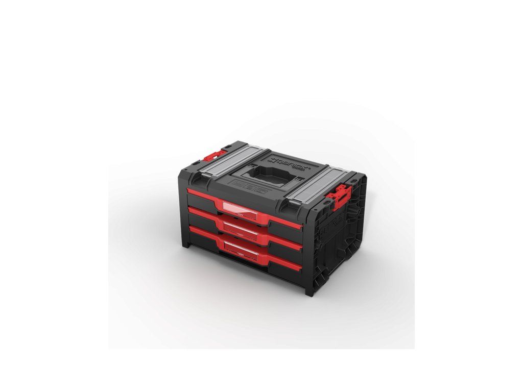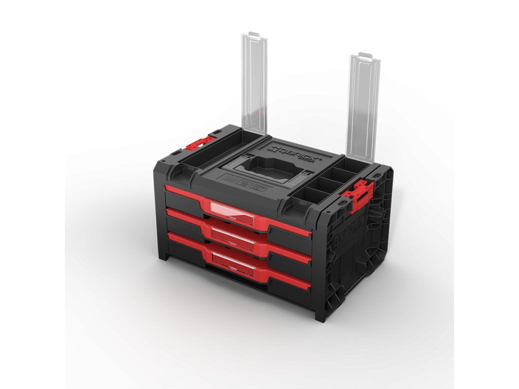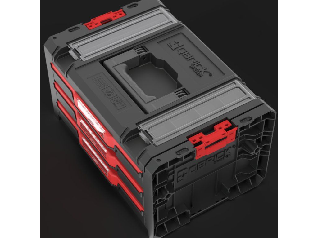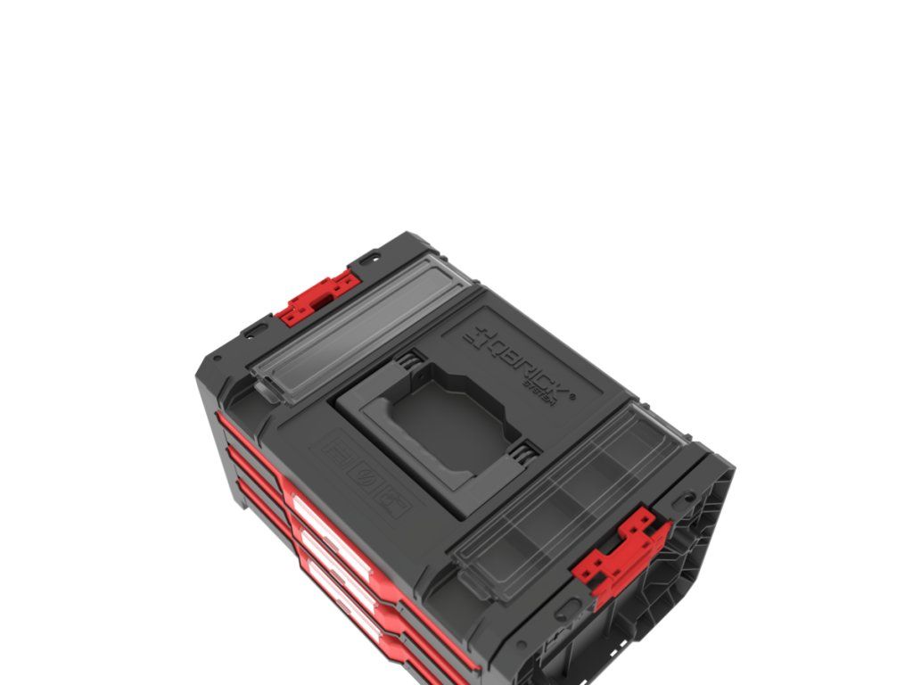 Qbrick System PRO Drawer 3 Toolbox 2.0 Profi Basic je priestranný, modulárny box na náradie vybavený tromi zásuvkami, ktoré sa vysúvajú po kovových vodiacich lištách. Praktické tlačidlo umožňuje jednoduchý prístup k ich obsahu. Základná verzia zásuvky je vybavená deviatimi nastaviteľnými priehradkami na organizáciu náradia a dielenského príslušenstva.