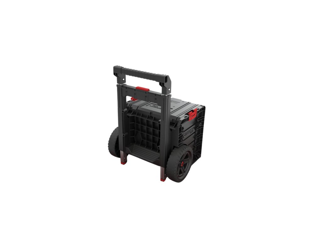 Veľké 9-palcové kolesá so šírkou takmer 6 cm, potiahnuté hrubou vrstvou gumy, zabezpečujú spoľahlivú trakciu aj v náročných podmienkach. O bezpečnosť prenášaného náradia sa starajú pevné predné zámky a bočné konektory z odolného polyamidu.