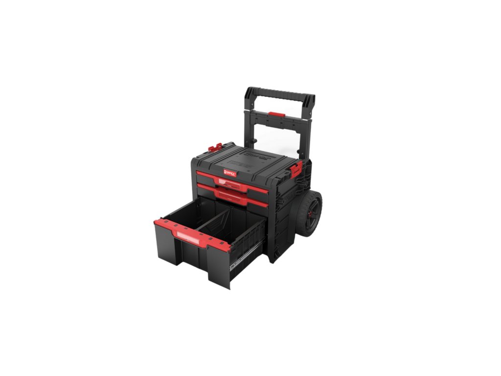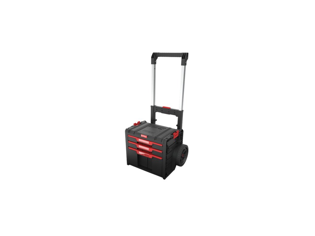 Qbrick System PRO Cart 2.0 Plus Drawer 3 je odolná a praktická mobilná skrinka na náradie vybavená zásuvkami. Vďaka dvojitej teleskopickej rukoväti s možnosťou demontáže a pohodlnému stúpadlu pre nohu ponúka istý úchop a jednoduché manévrovanie aj na menšom priestore.