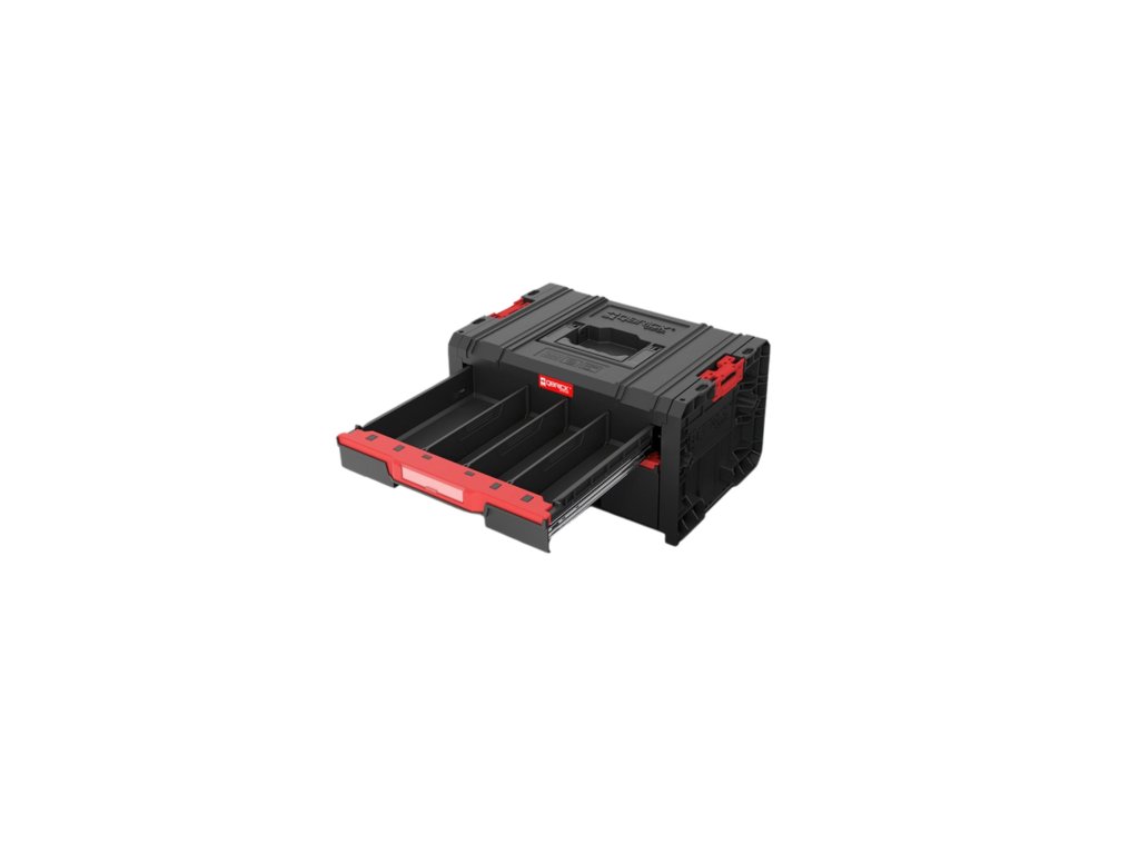 Qbrick System PRO Drawer 2 Toolbox Basic je priestranná, modulárna skrinka na náradie vybavená dvoma zásuvkami s kovovými vodiacimi lištami, ktoré zaisťujú hladké a bezpečné vysúvanie. Praktické tlačidlo umožňuje jednoduchý a rýchly prístup k obsahu zásuviek.