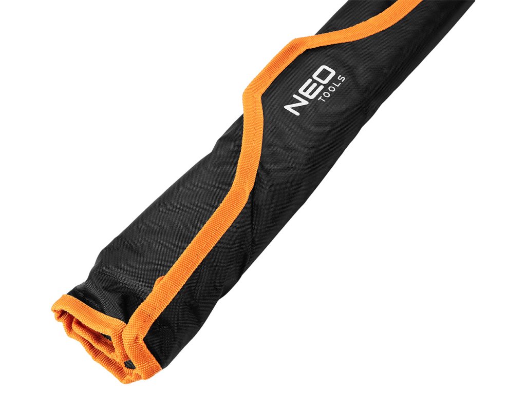 Kľúče s račňou, dlhé, sada 6 kusov, 8-19 mm, mäkké puzdro 09-370 od spoločnosti NEO je sada profesionálnych kľúčov vo veľkostiach: 8, 10, 13, 16, 17, 19 mm. Náradie je vyrobené z robustnej CrV ocele a ponúka sa v praktickom mäkkom puzdre, ktoré umožňuje zrolovanie materiálu. Kľúče sa vyznačujú mimoriadnou odolnosťou. Osvedčia sa v náročných podmienkach. Vďaka račňovému mechanizmu budú vhodné na náročné úlohy. Značka NEO sa odporúča pre profesionálov.