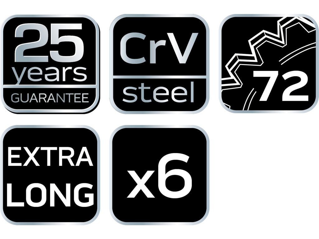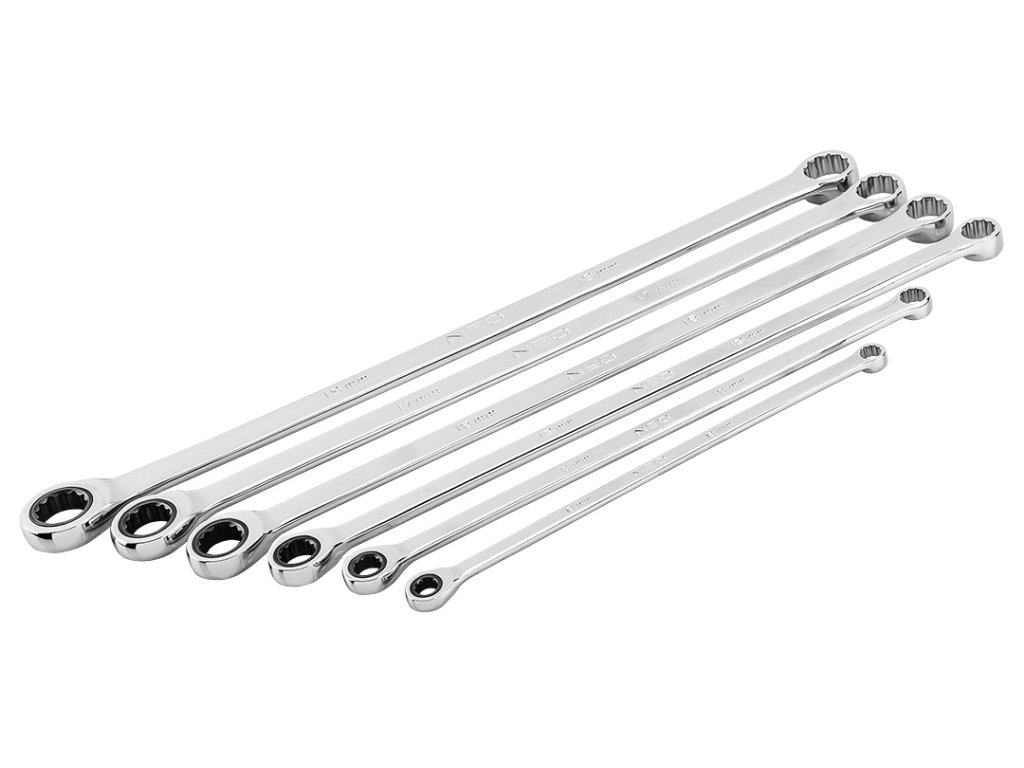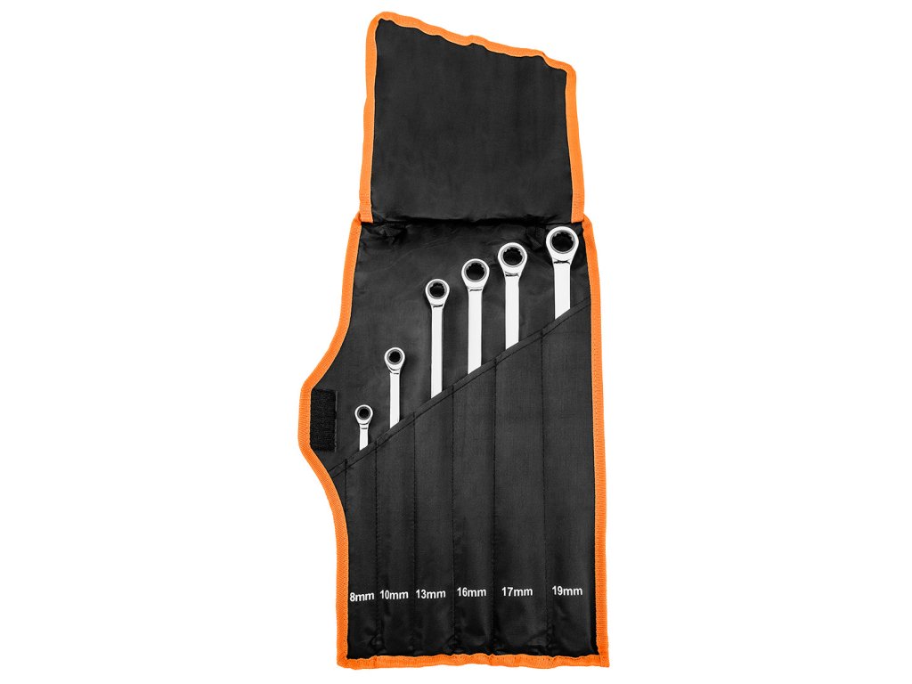Kľúče s račňou, dlhé, sada 6 kusov, veľkosti: 8, 10, 13, 16, 17, 19 mm, CrV oceľ, balenie: mäkké rolovacie puzdro