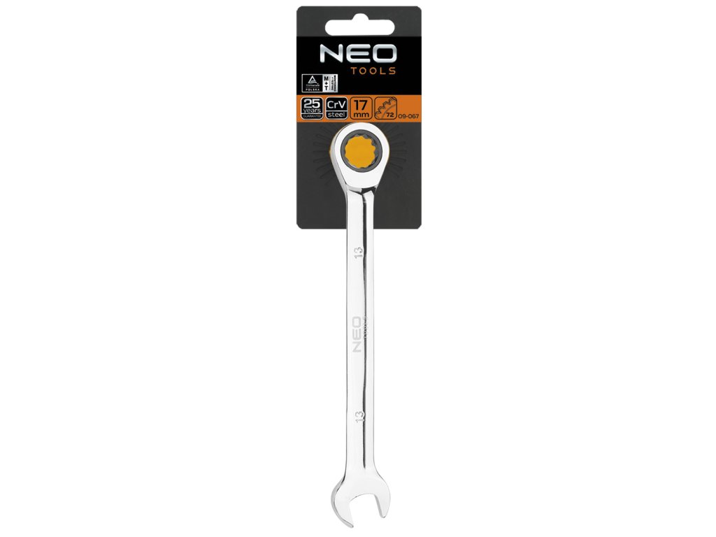 10 mm kombinovaný očkoplochý kľúč s račňovým mechanizmom (72 zubov). Kľúč je vyrobený z vysoko kvalitnej chróm-vanádiovej ocele (CRV). Certifikát TÜV Rheinland zaručuje vysokú kvalitu a spoľahlivosť produktu.