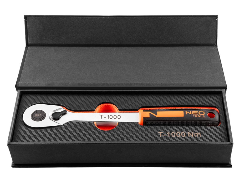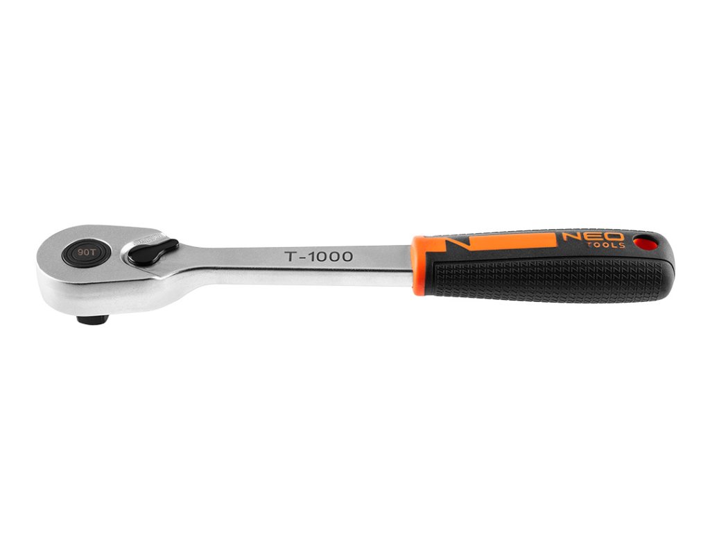 Račňa 1/2" s prepínacou pákou, 90 zubovým mechanizmom a maximálnym krútiacim momentom až 1000Nm, vyrobená z kvalitnej CrV a CrMo ocele.