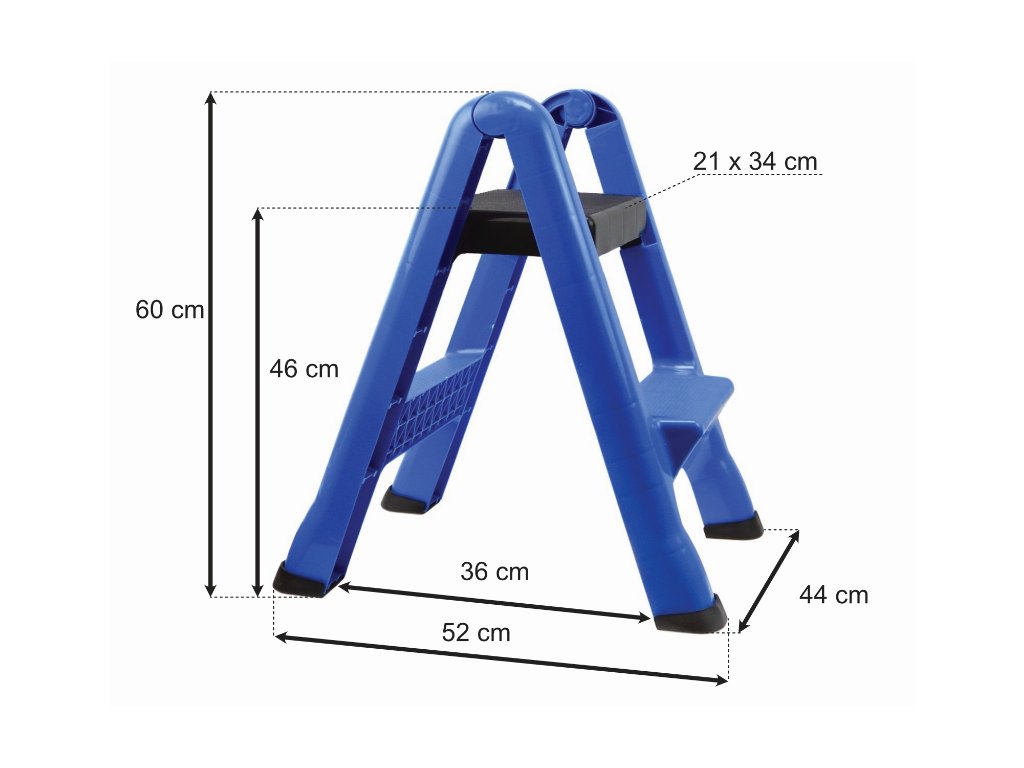 Schodíky sú vyrobené z plastu a majú nosnosť až 150 kg. Vďaka funkcii zloženia a nízkej hmotnosti sú ľahko skladovateľné.