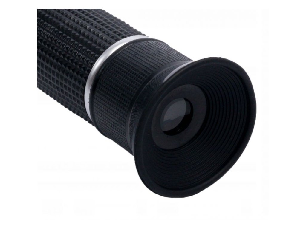 Otvorte plastový kryt hrotu refraktometra a pomocou pipety naneste niekoľko kvapiek na povrch priezoru refraktometra, zatvorte plastový kryt tak aby sa pod vekom tekutina rovnomerne rozložila. Počkajte 30 sekúnd aby sa teplota vzorky stabilizovala. Namierte refraktometer na svetelný zdroj a pozrite sa hľadáčikom, odčítajte hodnotu z príslušnej mierky na hranici bielej a modrej oblasti. Ak hodnotu nemožno odčítať kvôli rozmazaniu, upravte ostrosť pomocou zaostrenia na objektíve.