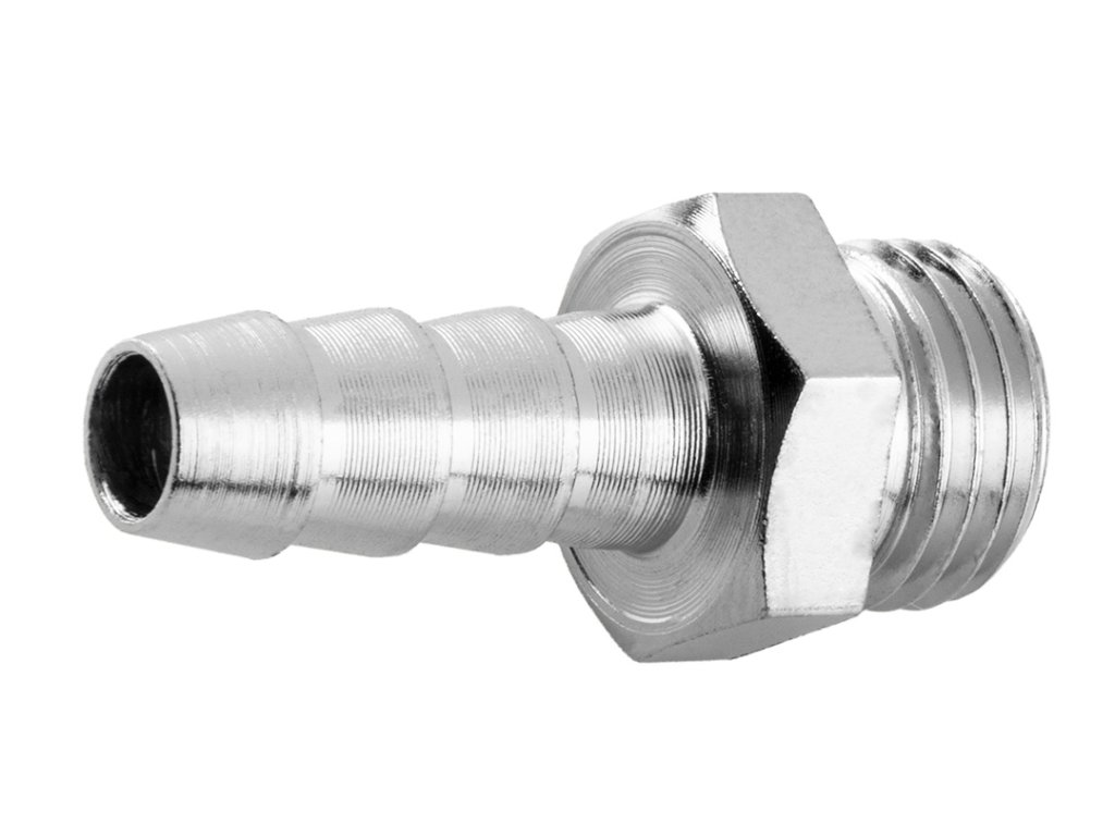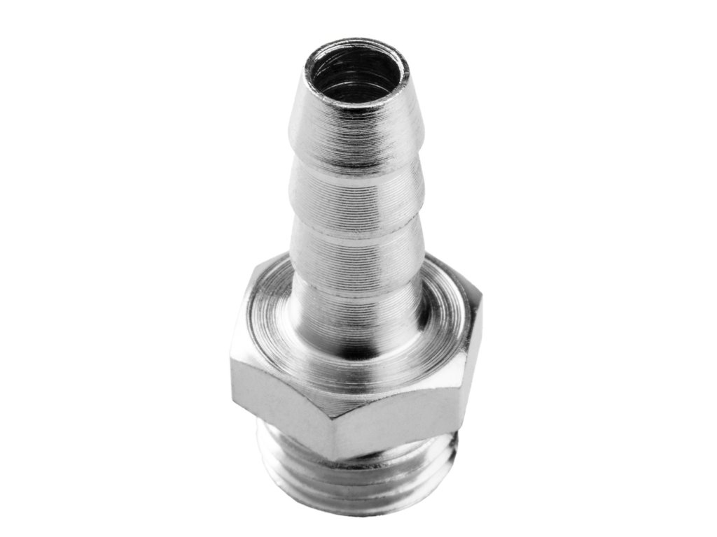Spojka pre 8 mm hadicu s 1/4" vonkajším závitom, mosadz, poniklovaná, maximálny tlak 16 barov, CE