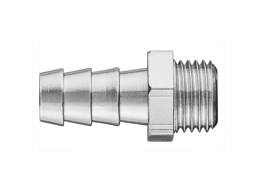 Spojka pre 10 mm hadicu s 1/4" vonkajším závitom, mosadz, poniklovaná, maximálny tlak 16 barov, CE