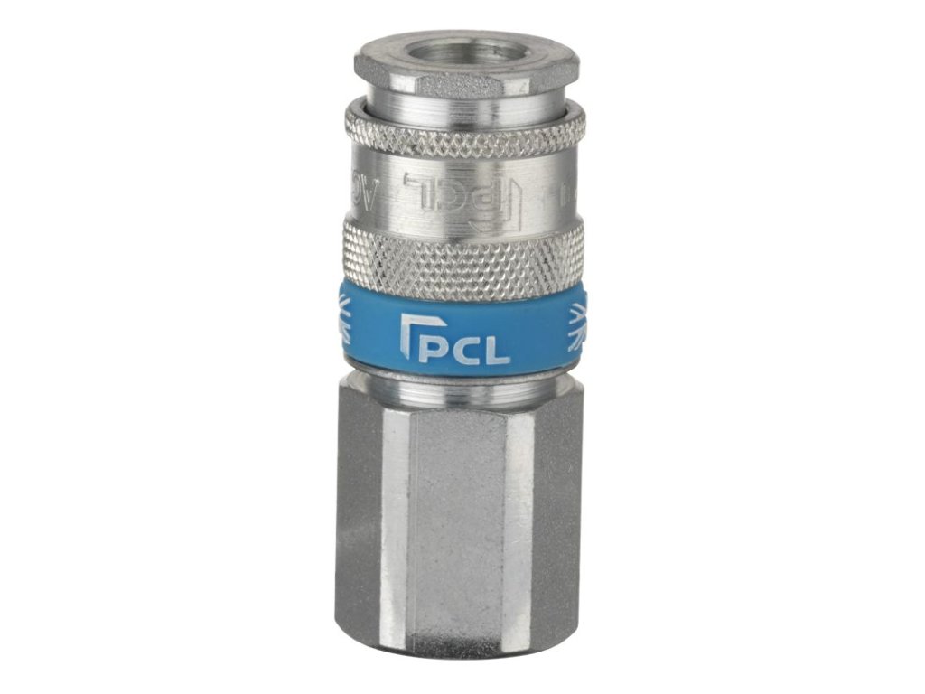 Coupling Type: XF-Euro (Type 25, Euro Profile) Coupling Style: Coupling Thread Size: Female Rp 1/2" Nominal Bore: 7.4 mm Airflow Rate: 2200 l/min @ 6 bar Maximum Working Pressure: 35 bar / 508 psi Operating Temperature Range: -40°C to +100°C Body Material: Hardened steel Finish: Corrosion-resistant coating Internal Components: Stainless steel Seals: Nitrile (NBR) Disconnection Protection: Steel shoulder guard Compatibility: Rectus 25/26, CEJN 320/326 & 320/326 eSafe, Legris 25/26, JWL 510/520/530/540/550/560/570, Tema 1600/1625, Norgren 234/238, Schrader Intercheck 35, Parker 35, Prevost ESC/ERC/ESI/ISC 07, OETIKER SC C, Hanson Auto-Flo 24, Kee 072/075 , Ludecke ES/ESI/ESI*/ESIS/ESIS*/ESPN Identification: Blue PCL silicone band Date Stamping: Yes (for traceability) Weight: 0.103 kg EAN: 5014875160061 Brand: PCL