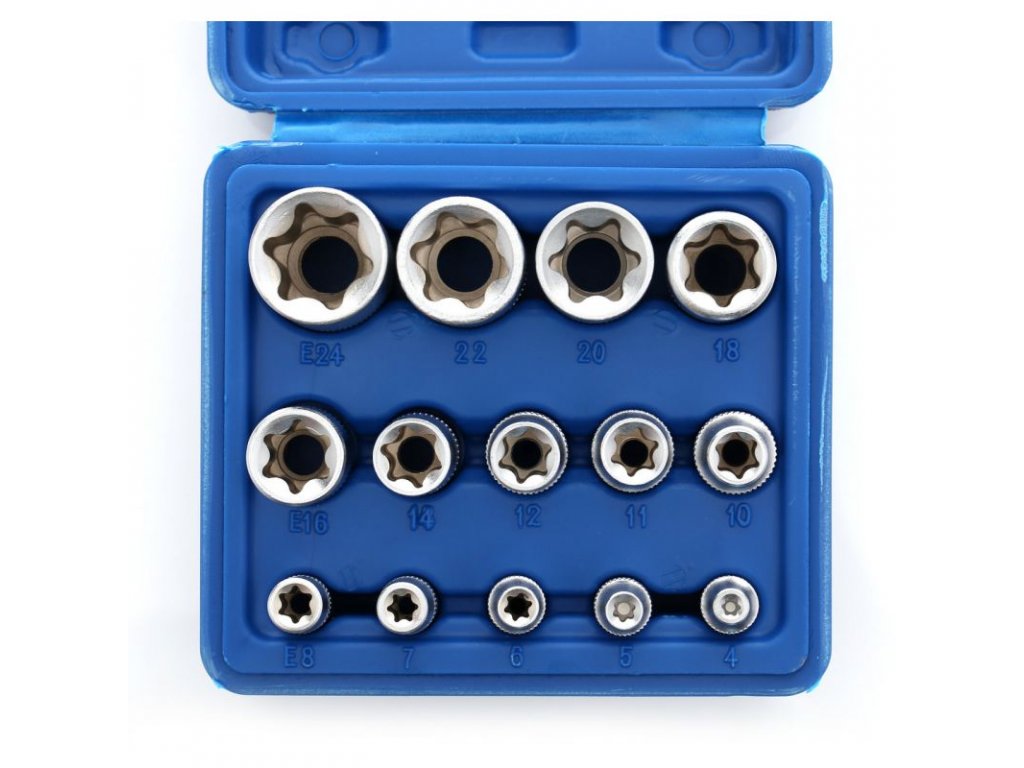 Sada obsahuje 14 kusov kľúčov, ktoré boli vyrobené z kvalitnej, pevnej a odolnej chróm-vanádiovej ocele. Sú určené pre račne so štvorhranom 1/2", 1/4" a 3/8".
