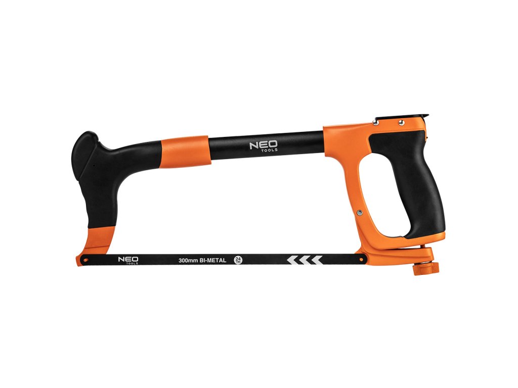 Píla na kov s dĺžkou čepele 300 mm. O presnú prácu sa postará vysoké napätie noža a dve možnosti rezania: rovno a pod uhlom 45 stupňov. Profilovaná dvojzložková rukoväť poskytuje vysoký komfort pri práci. Zariadenie využíva inovatívny systém napínania nožov. Pre pohodlie používateľa je v rukoväti umiestnená nádoba na náhradné pílové listy. Charakteristika: hliníková konštrukcia, dve rukoväte na pohodlné používanie, držiak nožov v rukoväti na náhradné nože. Rozmery: 147 × 300 × 398 mm