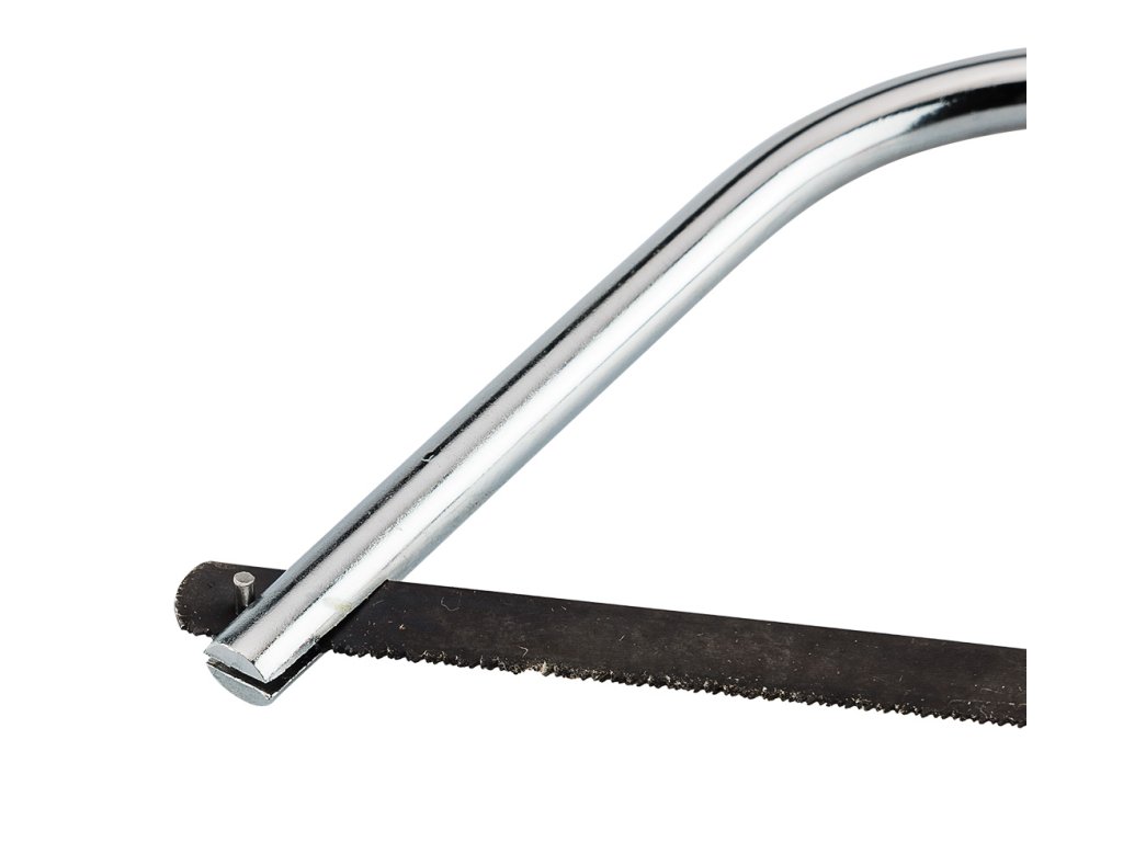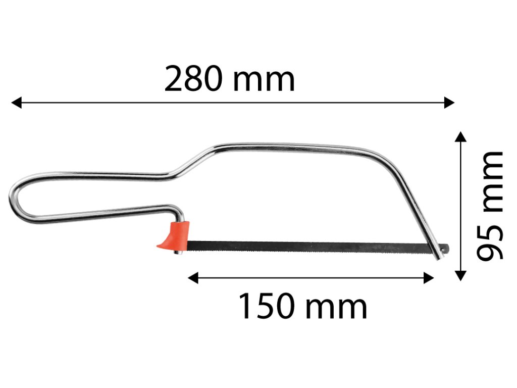 Píla na kov s dĺžkou čepele 150 mm. Oceľový drôtený rám s pohodlne tvarovanou stopkou. Ideálna na rezanie malých predmetov alebo použitie v stiesnených priestoroch. Vlastnosti: oceľová konštrukcia, pohodlná rukoväť. Rozmery: 95 × 153 × 280 mm