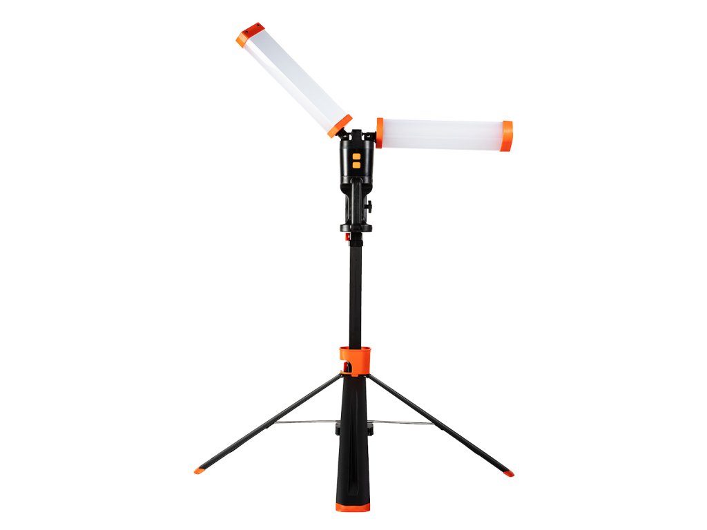 Dvojitá LED lampa, SMD LED, 360 stupňov svietenia, 2x4300lm, 2x40W, max. výška 2m, max. šírka 94cm, max. 180 stupňov rozloženia svetla, skladacia konštrukcia, max. 3580W 16A elektrická zásuvka, 5m kábel, magnety na lampách a stojane, vodotesnosť IP 54, odolnosť proti nárazom a otrasom IK08, napájanie 220-240V 50Hz AC, hmotnosť 5,8kg, rukoväť na prenášanie, farba svetla 5000K, materiál tela ABS