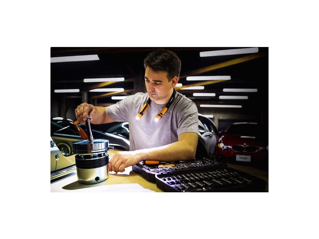 300 lm lampa na krk 99-112 od spoločnosti NEO TOOLS je 2W + 2W lampa s dvojitým zdrojom svetla. Funguje na báze 3,7 V lítium-iónovej batérie s kapacitou 2x 1200 mAh. Lampa NEO TOOLS ponúka intenzitu svetla 300 lm (s dobou prevádzky 3 hodiny) a 50 lm (s dobou prevádzky 5 až 6 hodín). Čas nabíjania je len 3 hodiny. Prístroj je vybavený odnímateľnými lampami a možno ho používať ako baterky. Je vyrobená z odolného ABS, má stupeň odolnosti proti vode a prachu IP20 a stupeň mechanickej odolnosti IK07. Svietidlo sa vyznačuje ochranou proti prebitiu a vybitiu. Magnet v oboch lampách umožňuje pripevnenie na akýkoľvek kovový povrch a gumový pásik uľahčuje používanie. Lampa na krk NEO TOOLS sa ponúka so 60 cm káblom USB C. Osvedčí sa na domáce aj profesionálne použitie, v automobilových servisoch alebo dielňach.