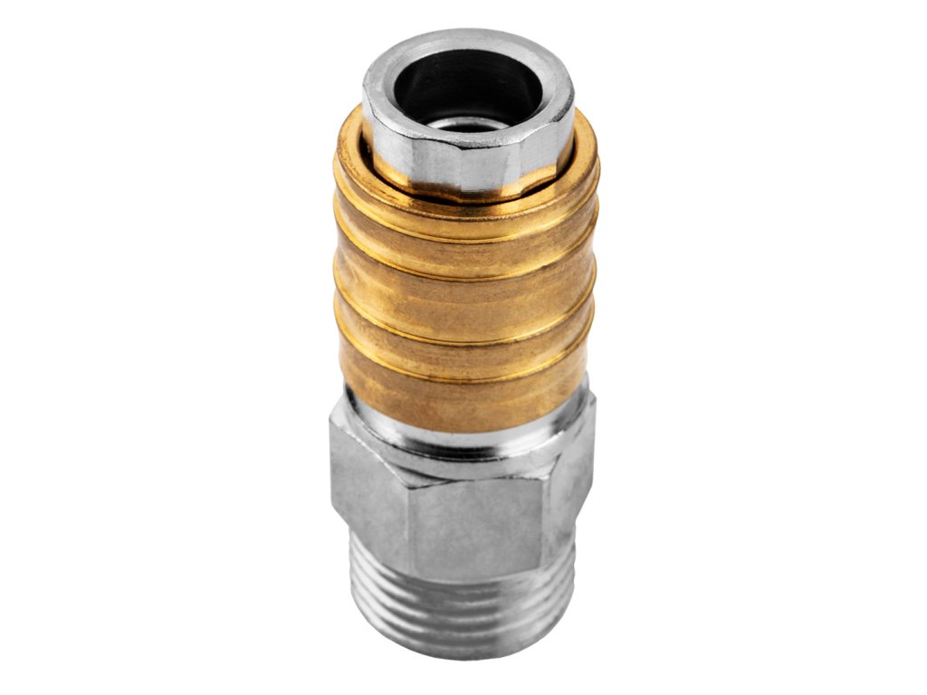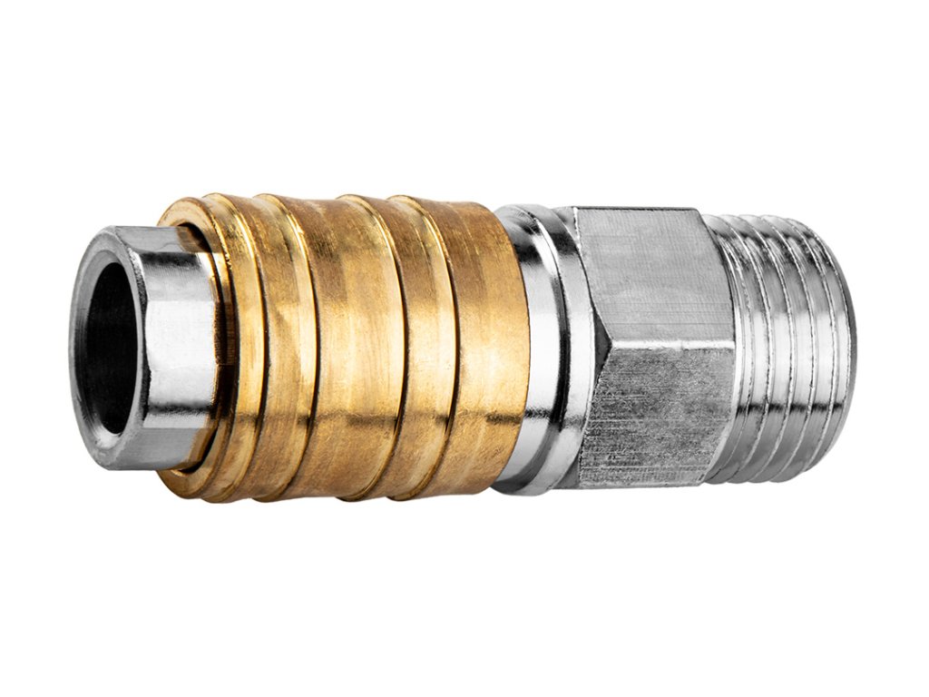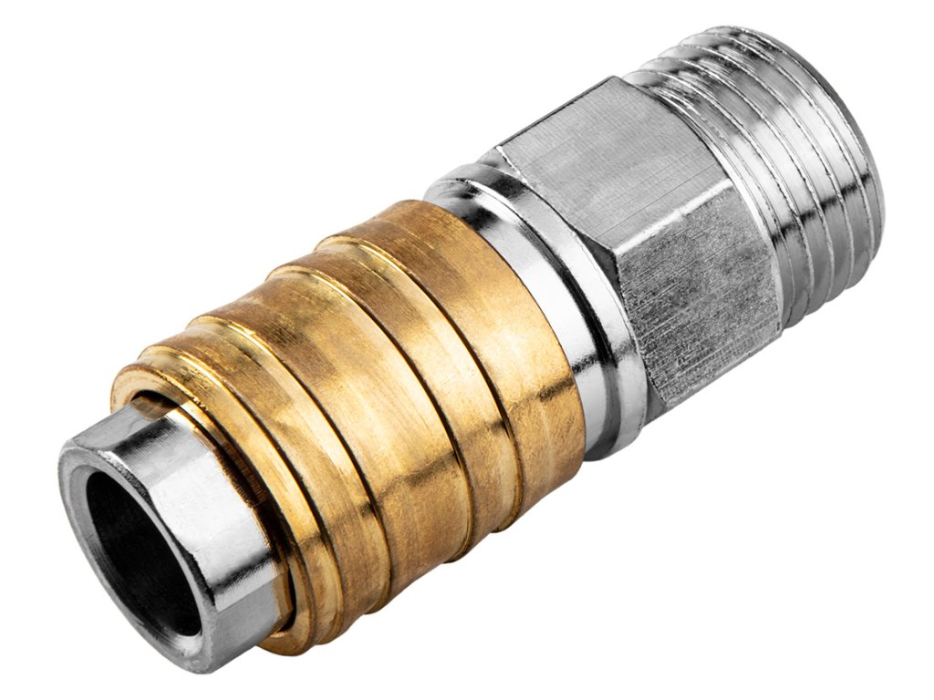 Hadicová spojka kompresora, 1/2" vonkajší závit, nehrdzavejúca oceľ, mosadz, maximálny tlak 16 barov, CE