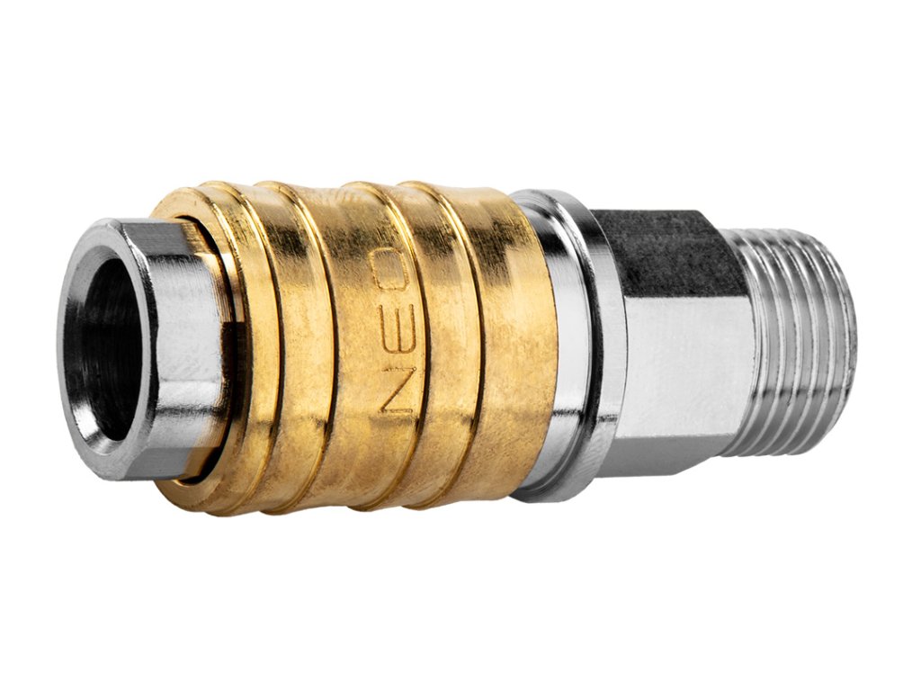 Kompresorová rýchlospojka NEO (ref. 12-636) so závitom M 3/8", vyrobená z vysoko kvalitnej nehrdzavejúcej ocele a mosadze. Maximálny pracovný tlak 16 barov. Výrobok s označením CE potvrdzuje zhodu s bezpečnostnými smernicami. Značka NEO spĺňa očakávania profesionálov.