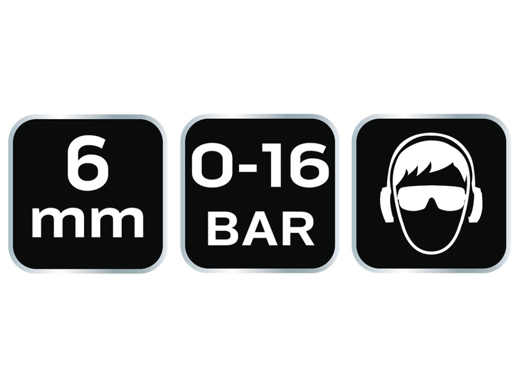 Rýchlospojka pre kompresor s výstupom pre 6 mm hadicu, nerezová oceľ, mosadz, maximálny tlak 16 barov, CE