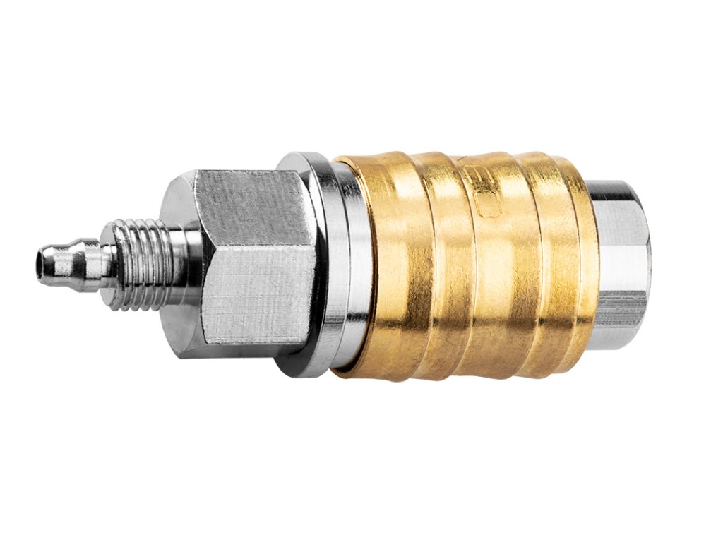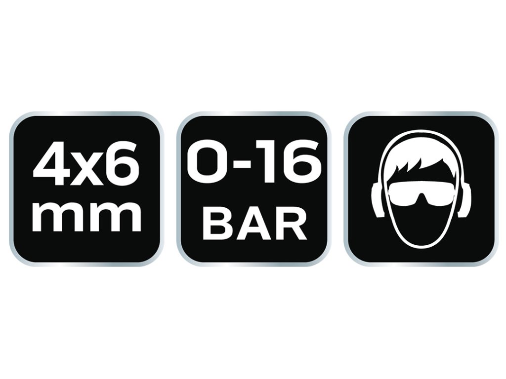 Rýchlospojka pre kompresor s výstupom pre hadicu 4 x 6 mm, nehrdzavejúca oceľ, mosadz, s pružinou, maximálny tlak 16 barov, CE