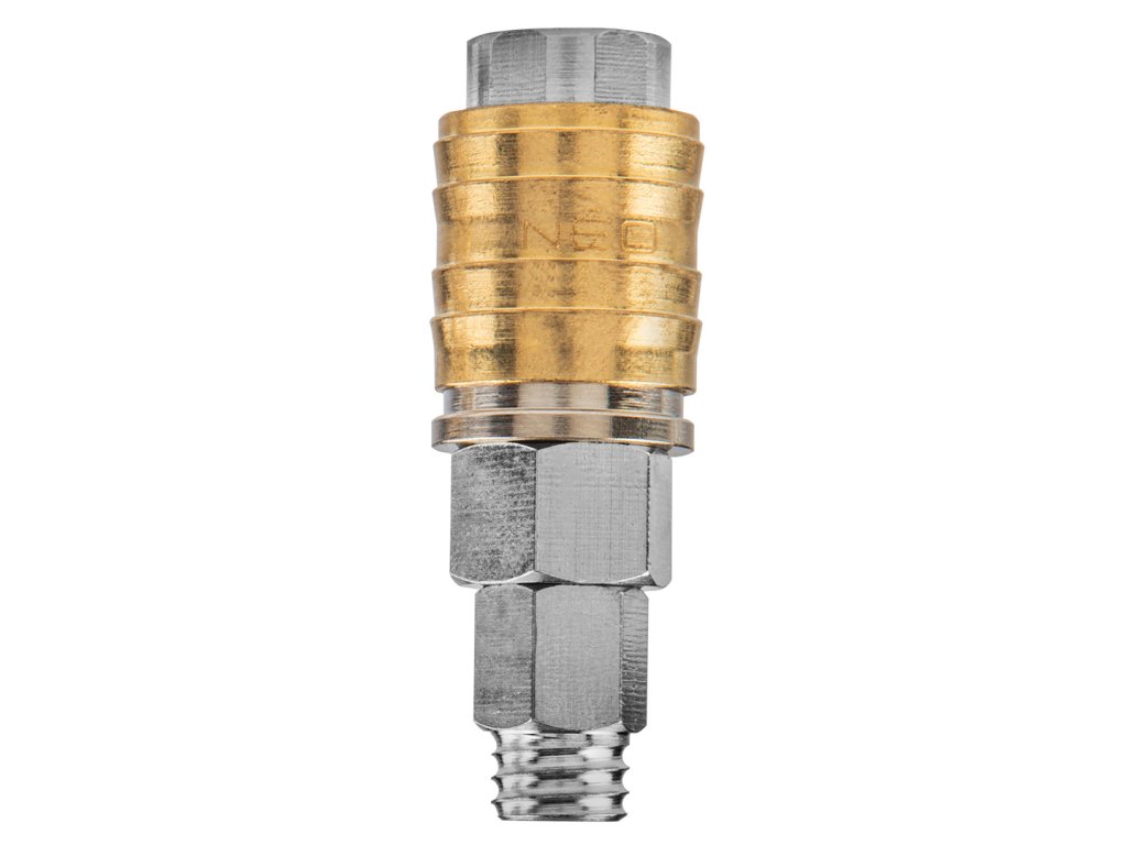 Rýchlospojka pre kompresor NEO (ref. 12-601) s hadicovým výstupom, vyrobená z vysoko kvalitnej nehrdzavejúcej ocele a mosadze. Vonkajší priemer 8 mm, vnútorný 6 mm. Zabezpečuje bezpečné pripojenie pri tlaku do 16 barov. Vďaka pružine sa tlaková hadica jemne prehýba a nezhŕňa sa hneď za armatúrou. Vysokú kvalitu výrobku potvrdzuje certifikát CE. Značka NEO spĺňa očakávania profesionálov.