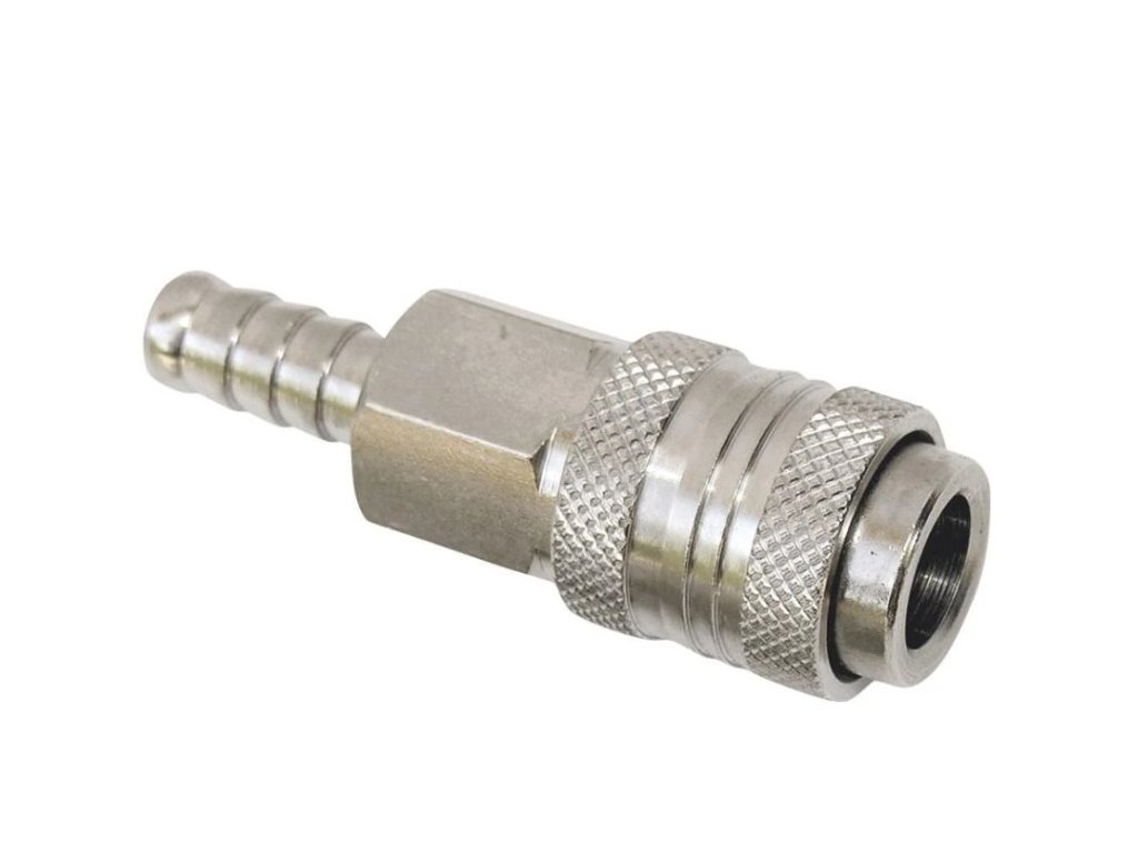 Rýchlospojka samica s konektorom 1/4" na pripojenie hadice 6.35mm. Materiál: oceľ.