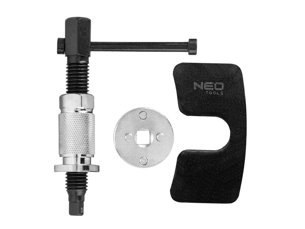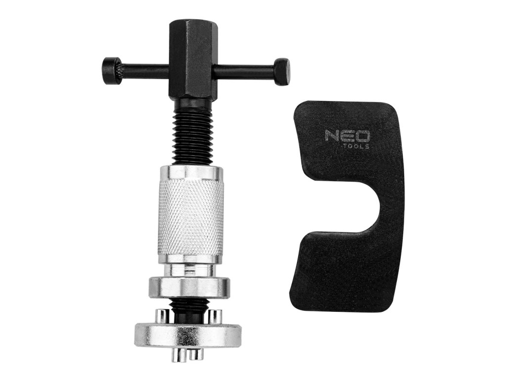 Oddeľovač brzdových strmeňov s pravým závitom NEO je nevyhnutným príslušenstvom každej profesionálnej dielne a dobre vybavenej domácej garáže. Uľahčuje rýchlu výmenu brzdových doštičiek. Tento nástroj sa používa na rovnomerné roztiahnutie piestikov pri výmene brzdových doštičiek. Tým sa eliminuje potreba použitia sily, pretože piesty sa dajú ľahko rozšíriť od 25 do 60 mm. Sada obsahuje: gombík, obojstranný adaptér na zadné strmene a dorazovú dosku.