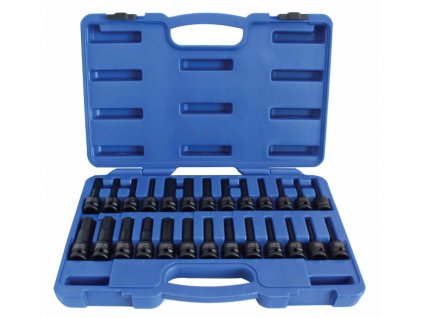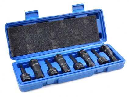 Sada rázových nadstavcov - nástrčné objímky, vyrobené z vysoko kvalitnej CrMo (chróm-molybdénovej) ocele.