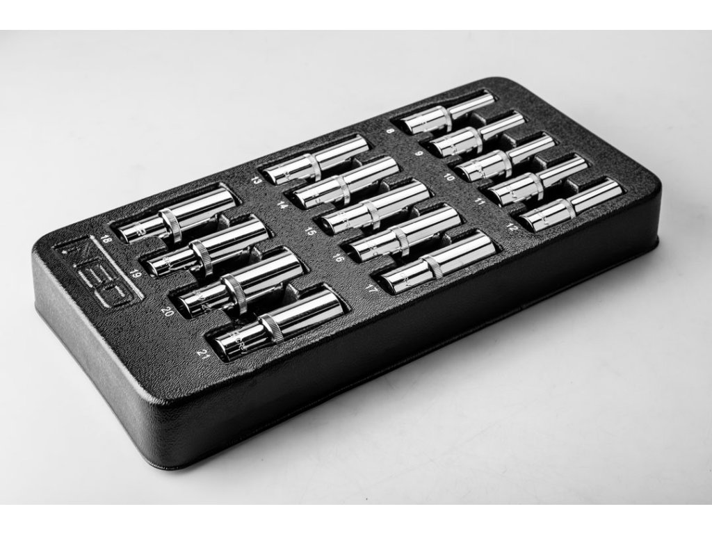 1/2" dlhé nástrčné hlavice, 8-21 mm, sada 14 ks. Šesťhranné nástrčné hlavice NEO (ref. 84-243) z odolnej chróm-vanádiovej ocele. Vlnitý povrch zlepšuje priľnavosť zásuviek. Dodáva sa v plastovej forme, ktorá sa zmestí do zásuviek skriniek pracovného stola NEO 84-221 a 84-222. Spoľahlivosť výrobku potvrdzuje 25-ročná záruka. Značka NEO spĺňa očakávania profesionálov.