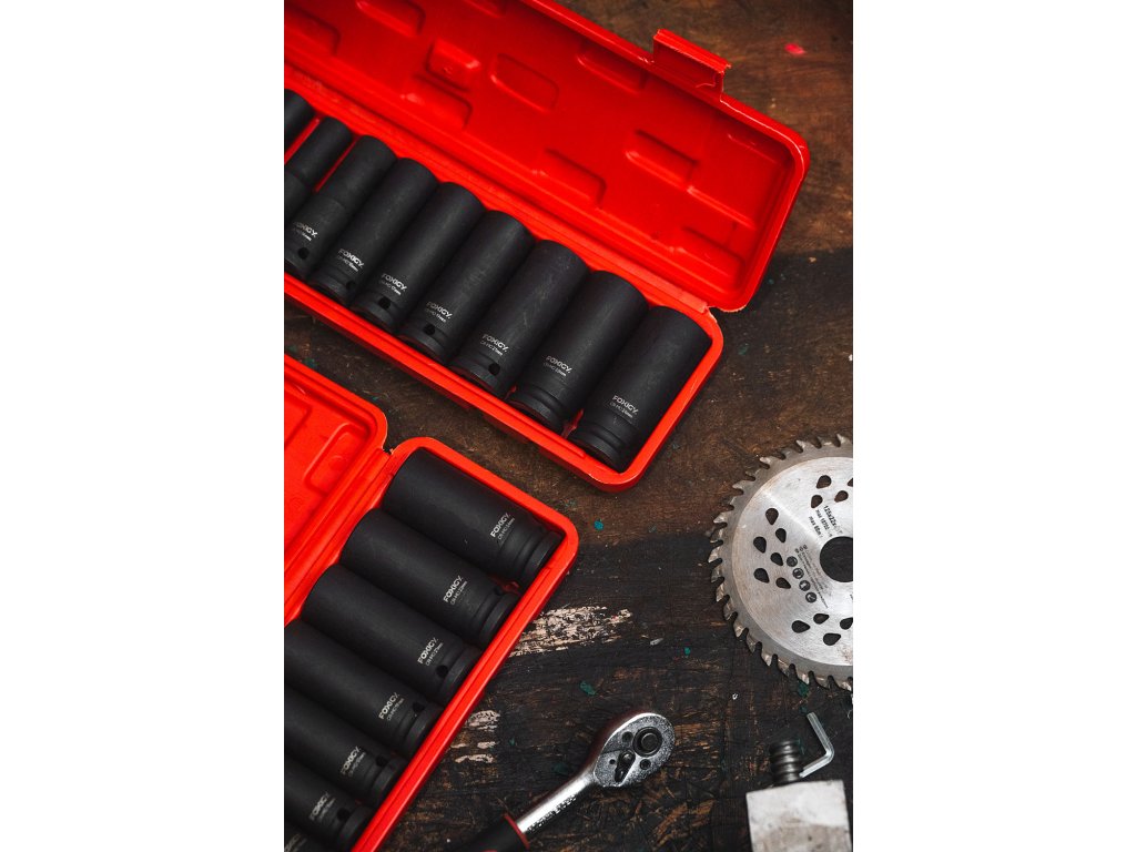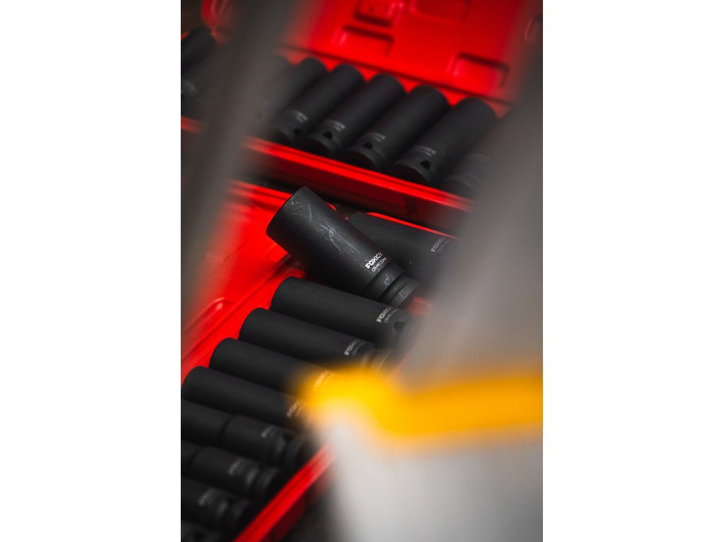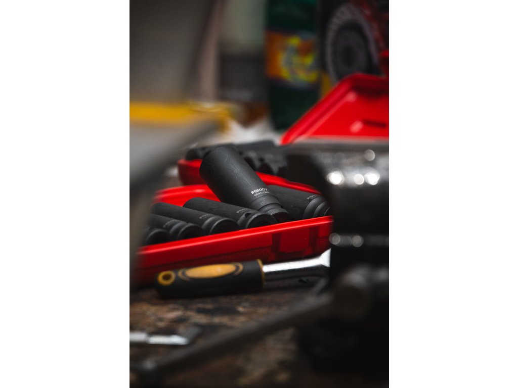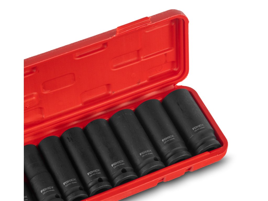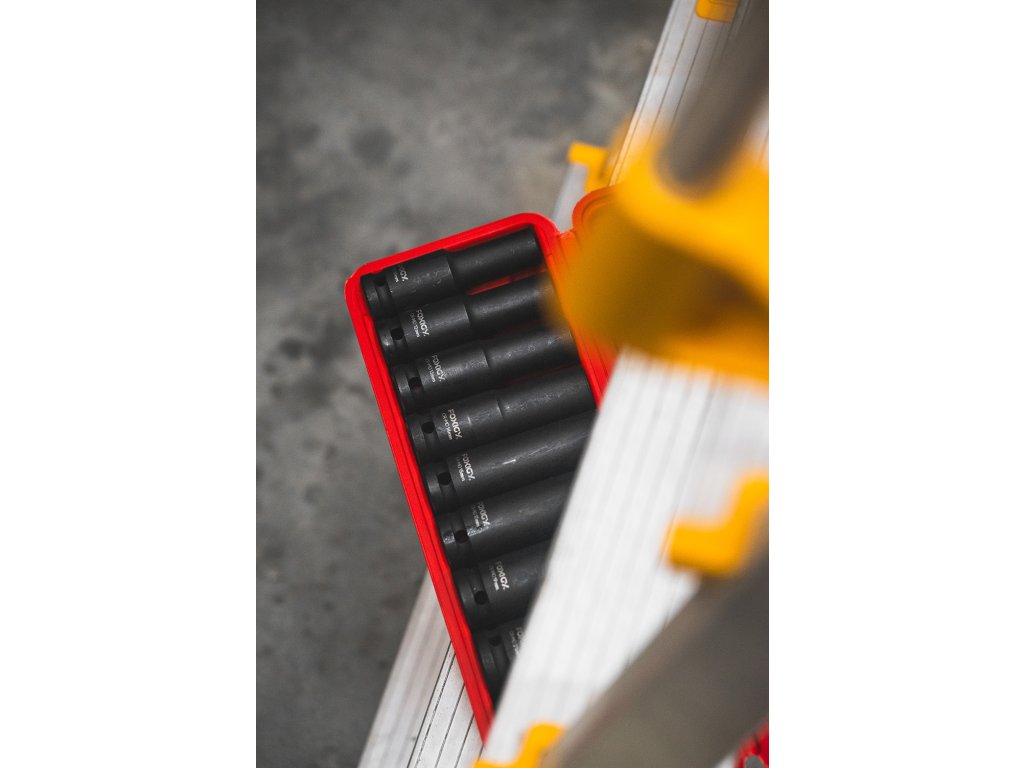 Sada rázových nadstavcov - nástrčné objímky, vyrobené z vysoko kvalitnej CrMo (chróm-molybdénovej) ocele.
