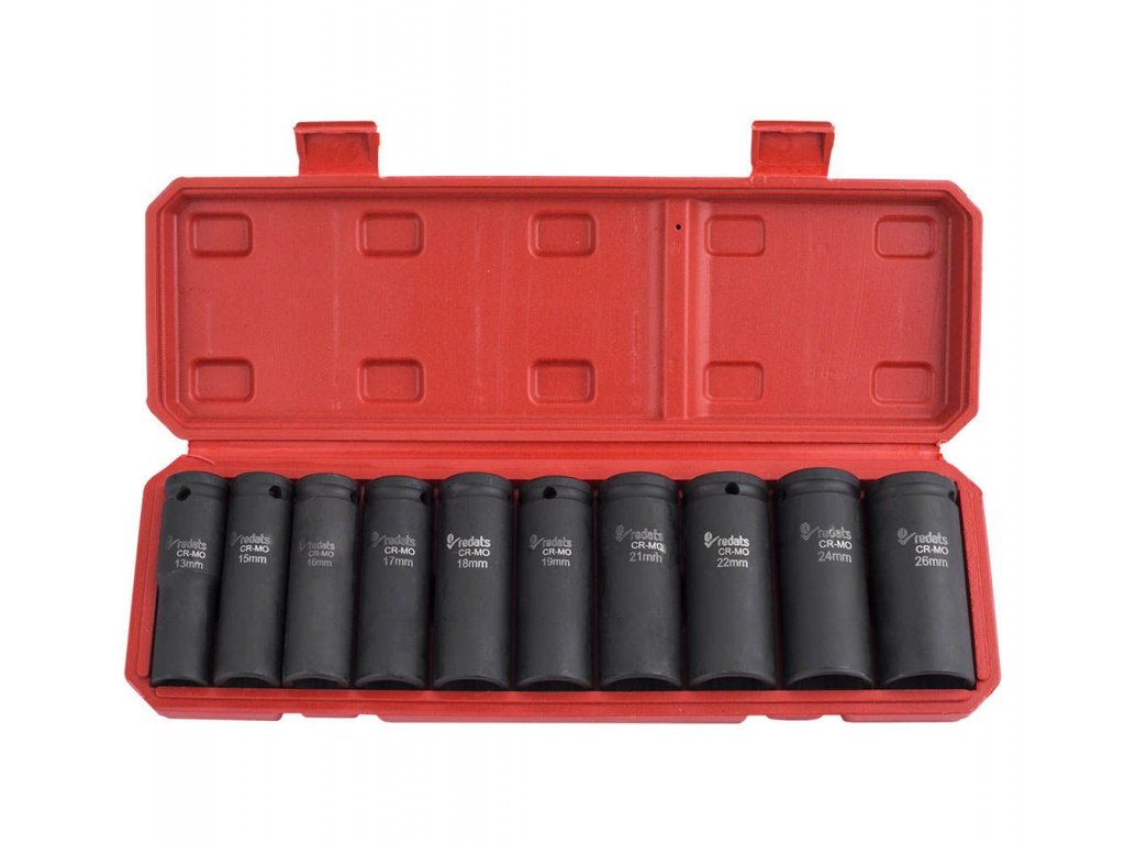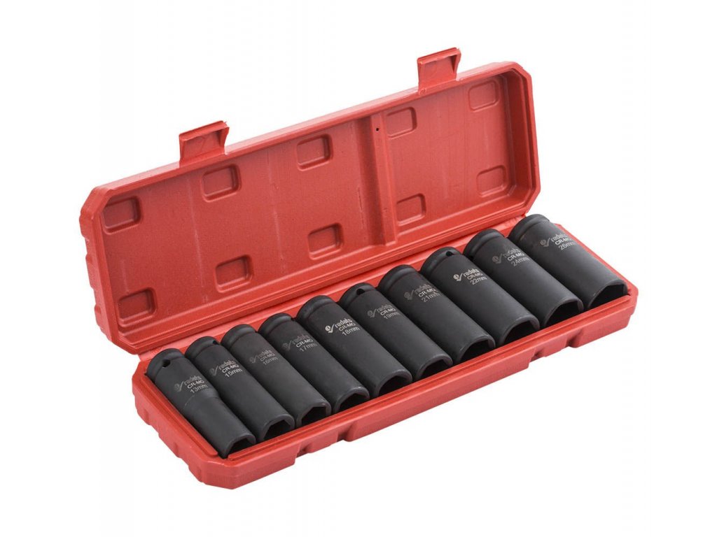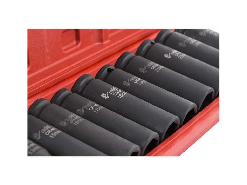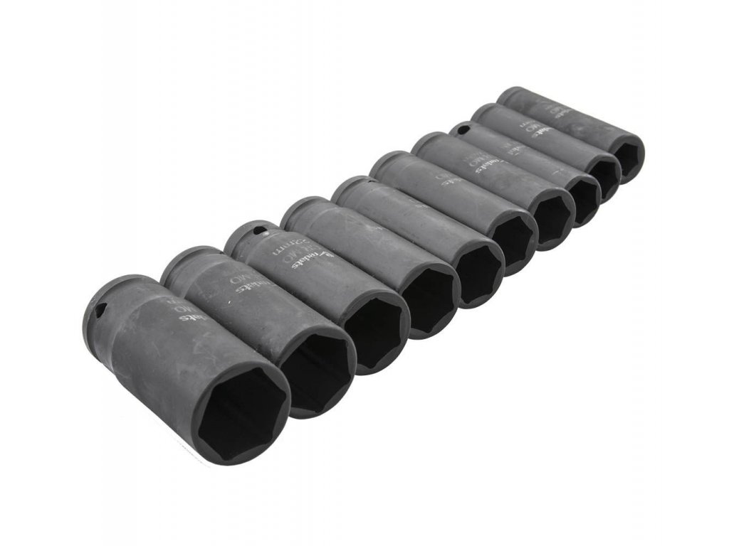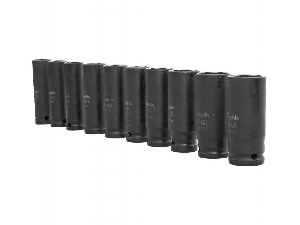 Sada rázových nadstavcov - nástrčné objímky, vyrobené z vysoko kvalitnej CrMo (chróm-molybdénovej) ocele.