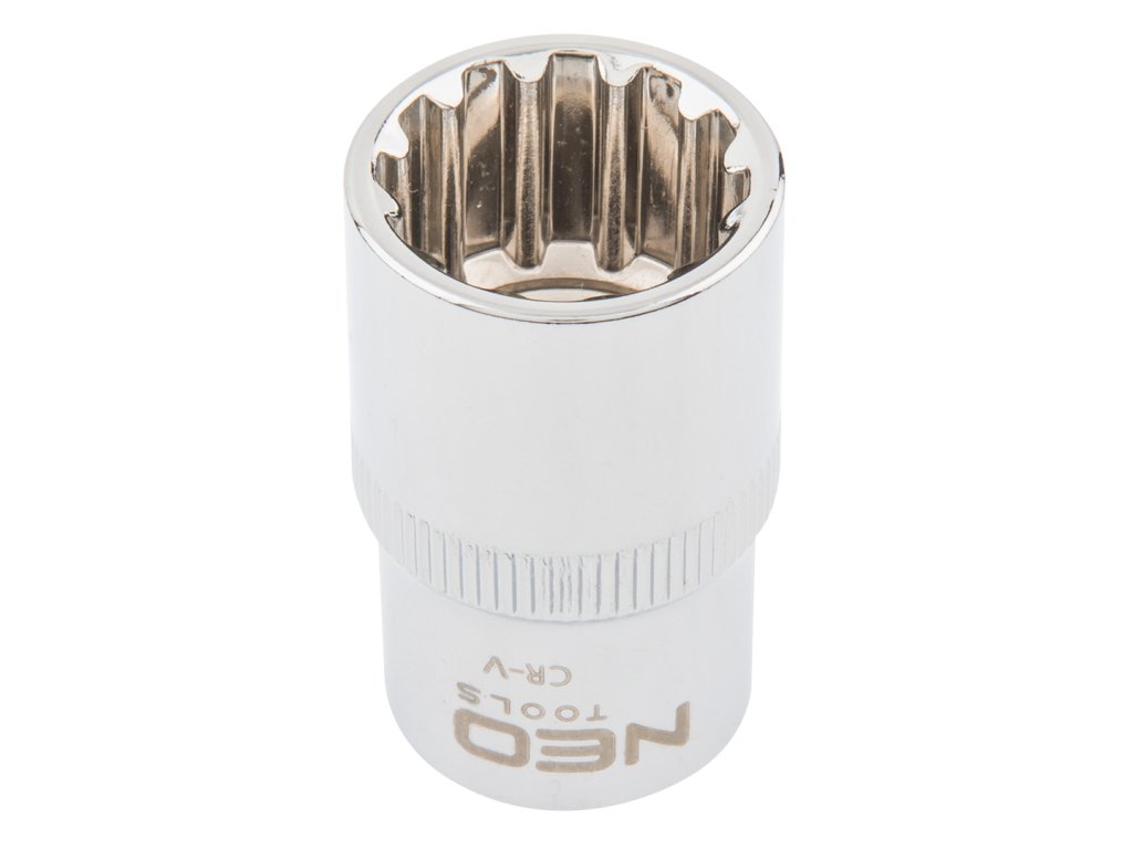 Nástrčná hlavica NEO 1/2" s drážkou (ref. 08-582) veľkosti 10 mm, vyrobená z odolnej chróm-vanádiovej ocele podľa normy DIN 3124. Guľový tvar nástrčnej hlavice poskytuje veľmi široké možnosti použitia, vďaka čomu je možné odskrutkovať skrutky torx, drážkové, 12-uholníkové, metrické, palcové a štvorhranné. Kvalitu nástroja potvrdzuje certifikát TÜV a 25-ročná záruka výrobcu. Značka NEO spĺňa očakávania profesionálov.