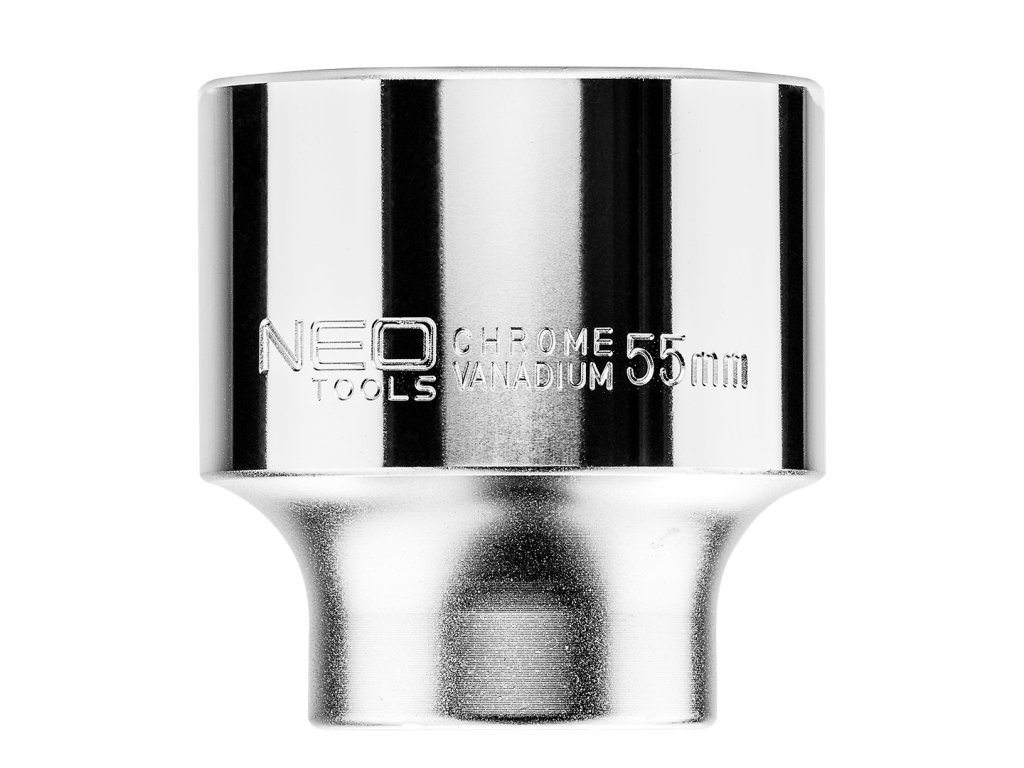 NEO 3/4" šesťhranná objímka (ref. 08-340) veľkosti 55 mm, vyrobená z odolnej chróm-vanádiovej ocele podľa normy DIN 3124. Kvalita náradia potvrdená certifikátom TÜV a 25-ročnou zárukou výrobcu. Značka NEO spĺňa očakávania profesionálov.