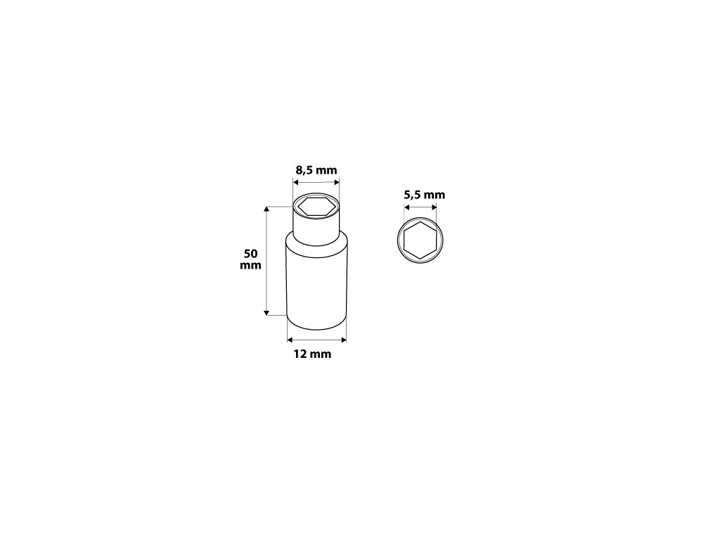 Dlhá šesťhranná objímka 1/4", 5.5 mm, CrV oceľ, DIN3124, certifikát TÜV M+T, záruka 25 rokov